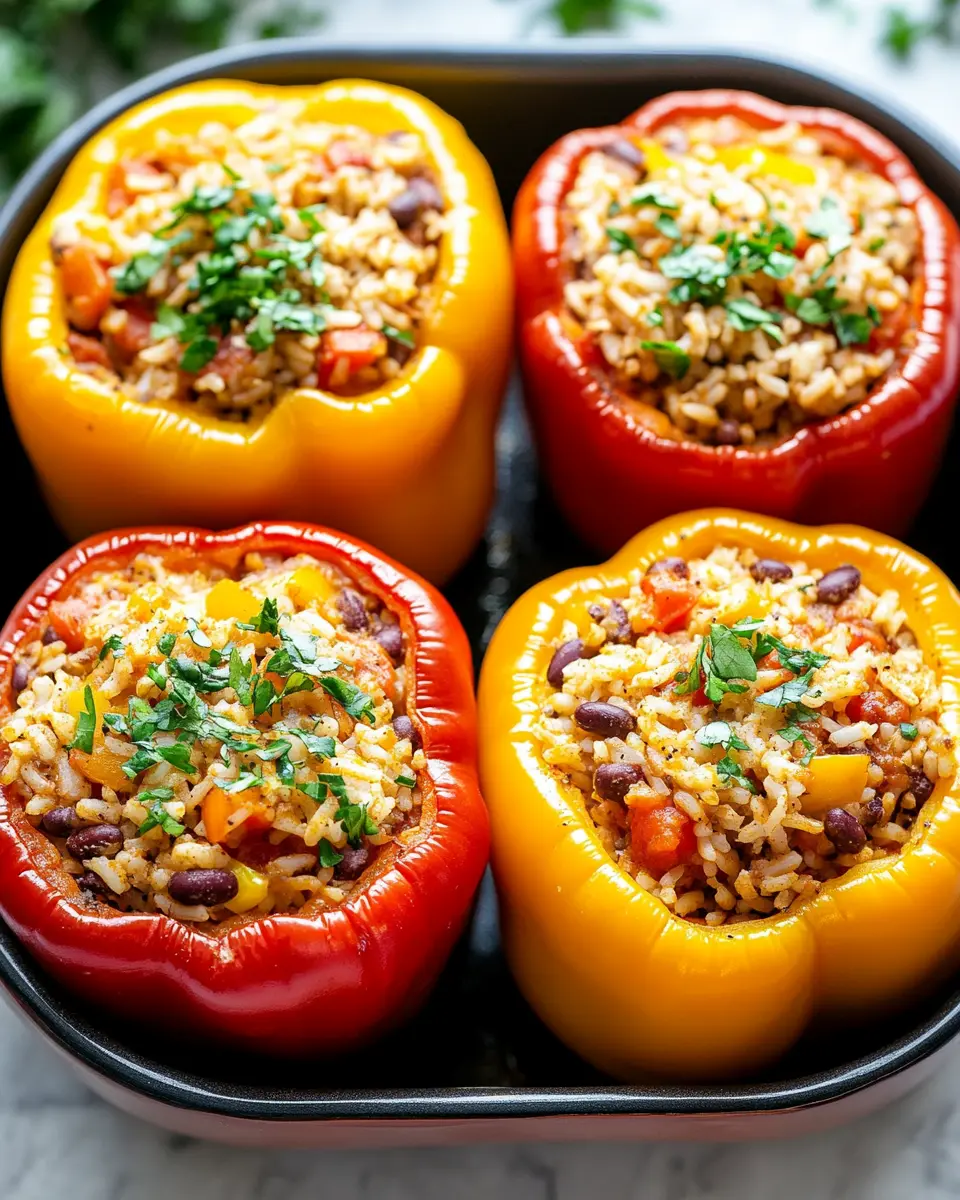 If you’re looking for a vegetarian option, replace the meat with black beans or lentils, and consider using quinoa instead of rice. Quinoa is a protein-packed grain that adds a wonderful nuttiness and complements the peppers beautifully, making it an excellent alternative for a healthy, meat-free meal.