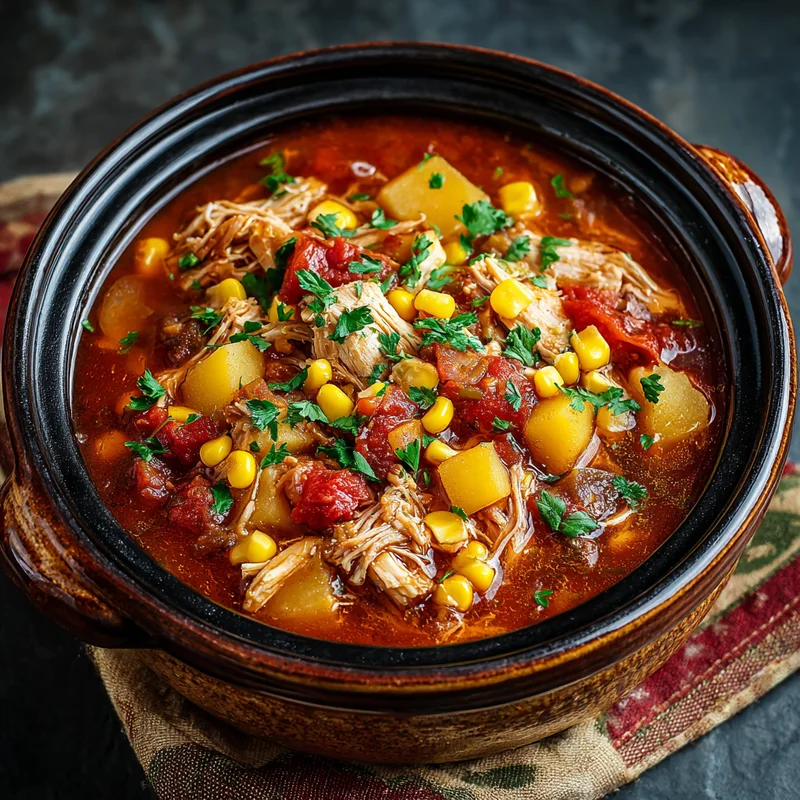 - Shred and stir: Once the cooking time is up, carefully remove the chicken breasts from the slow cooker. They should be super tender! Use two forks to shred them right in the pot (or on a cutting board if it’s easier). Then, just stir all that shredded chicken back into the stew.