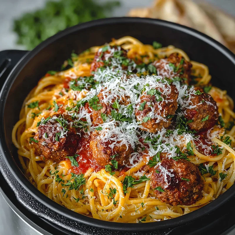 - Serve: Stir to combine spaghetti, sauce, and meatballs. Serve hot, topped with Parmesan cheese and fresh basil.