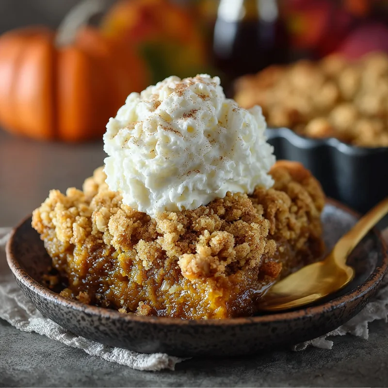 - Pop the dish into your preheated oven. Let it bake for about 40-50 minutes. You’ll know it’s ready when the pumpkin layer is set (it won’t be jiggly in the center) and the streusel topping is a beautiful golden brown.