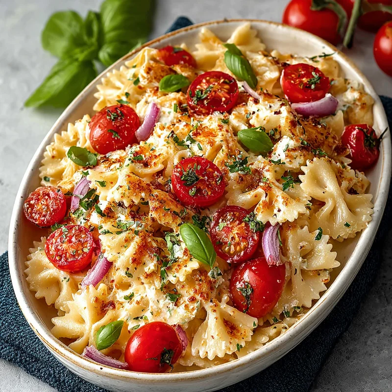 - Cook the pasta: While your tomatoes and cheese are doing their thing in the oven, cook the bow tie pasta according to the package directions. Don’t forget to drain it, but here’s a little secret: reserve about ½ cup of that starchy pasta water. This is your secret weapon for achieving the perfect sauce consistency later!