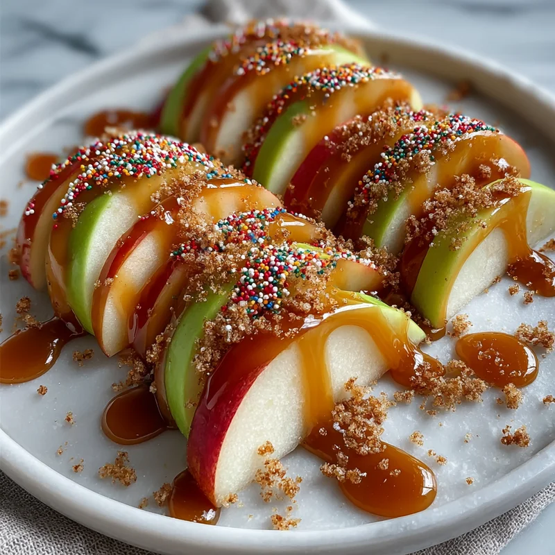 - Drizzle with caramel: Now for the best part! Generously drizzle the caramel sauce all over the apple slices. You want a good coating on each piece, so don’t be shy! I like to use a spoon to get those lovely, gooey strands.