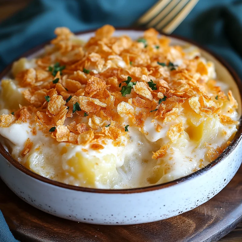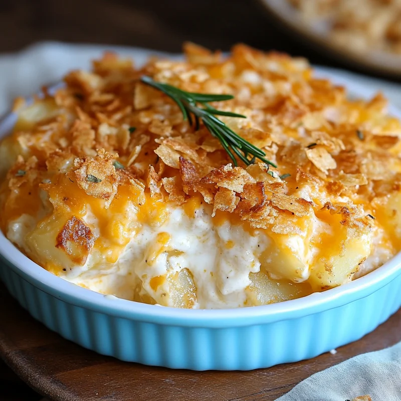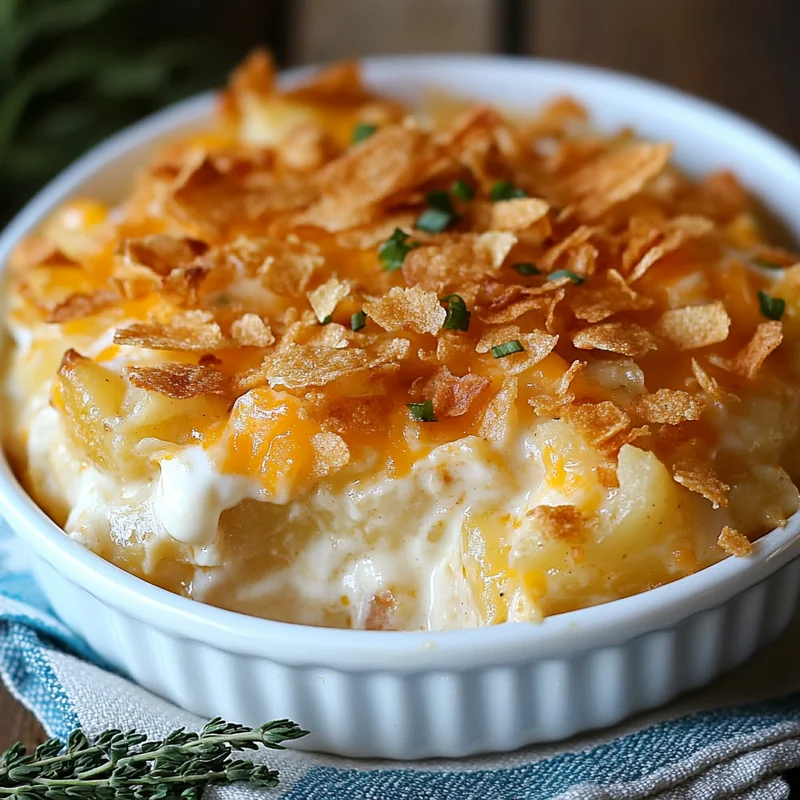 A classic comfort food, often called Funeral Potatoes, this dish features tender hash brown potatoes in a rich, creamy cheese sauce with a crunchy cornflake topping. It’s easy to make, perfect for gatherings, and a true crowd-pleaser.