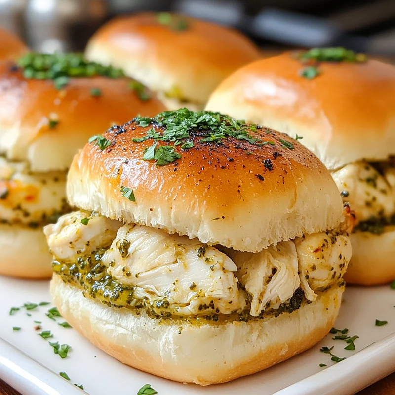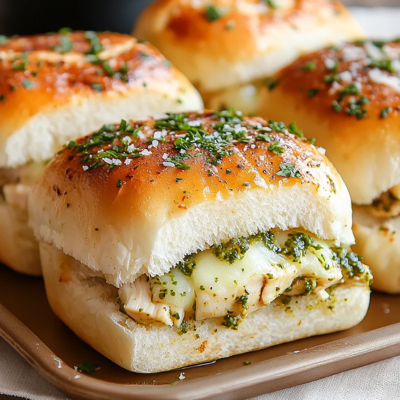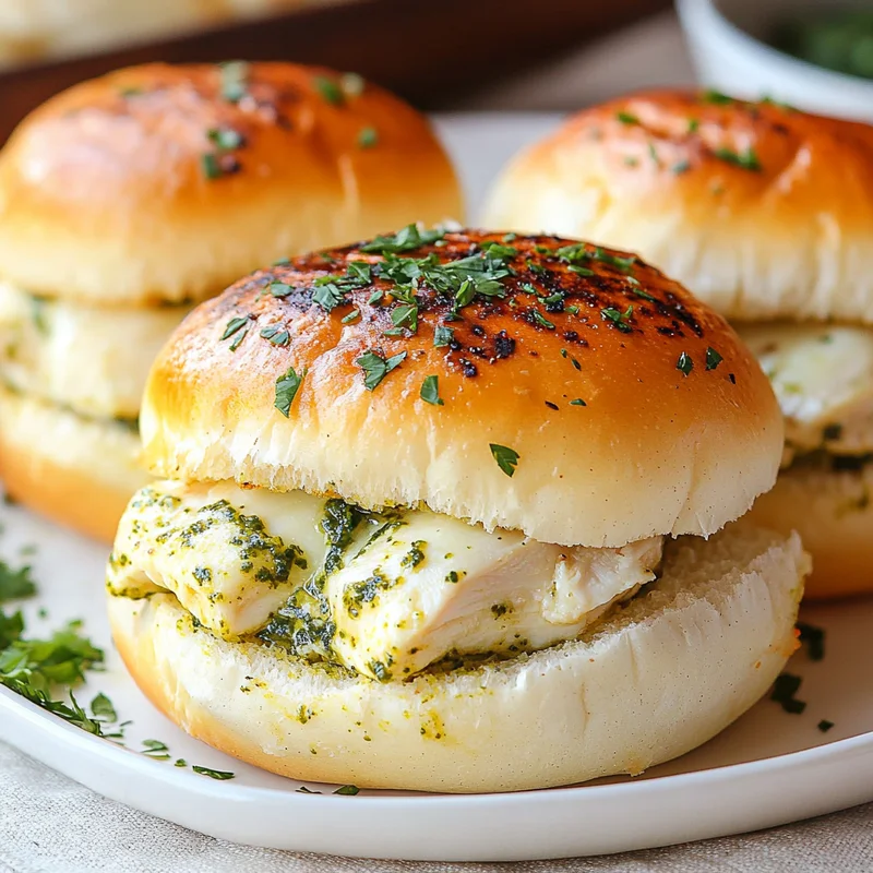 Easy Cheesy Garlic Pesto Chicken Sliders