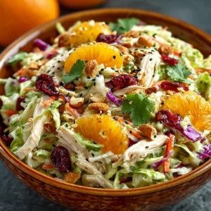 - Toss it all together: Grab your biggest mixing bowl. Add in your coleslaw mix, the finely chopped rotisserie chicken, those lovely toasted almonds or cashews, the sweet dried cranberries, the finely diced red onion, those optional sesame sticks, the fresh chopped cilantro, the drained mandarin oranges (if you’re using them!), and the sesame seeds. Give it a gentle little stir just to get everything acquainted.
