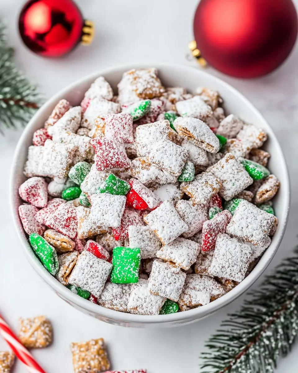These colorful candies not only bring a pop of festive cheer but also add a satisfying crunch. Their vibrant colors make the puppy chow visually appealing, perfect for holiday gatherings.