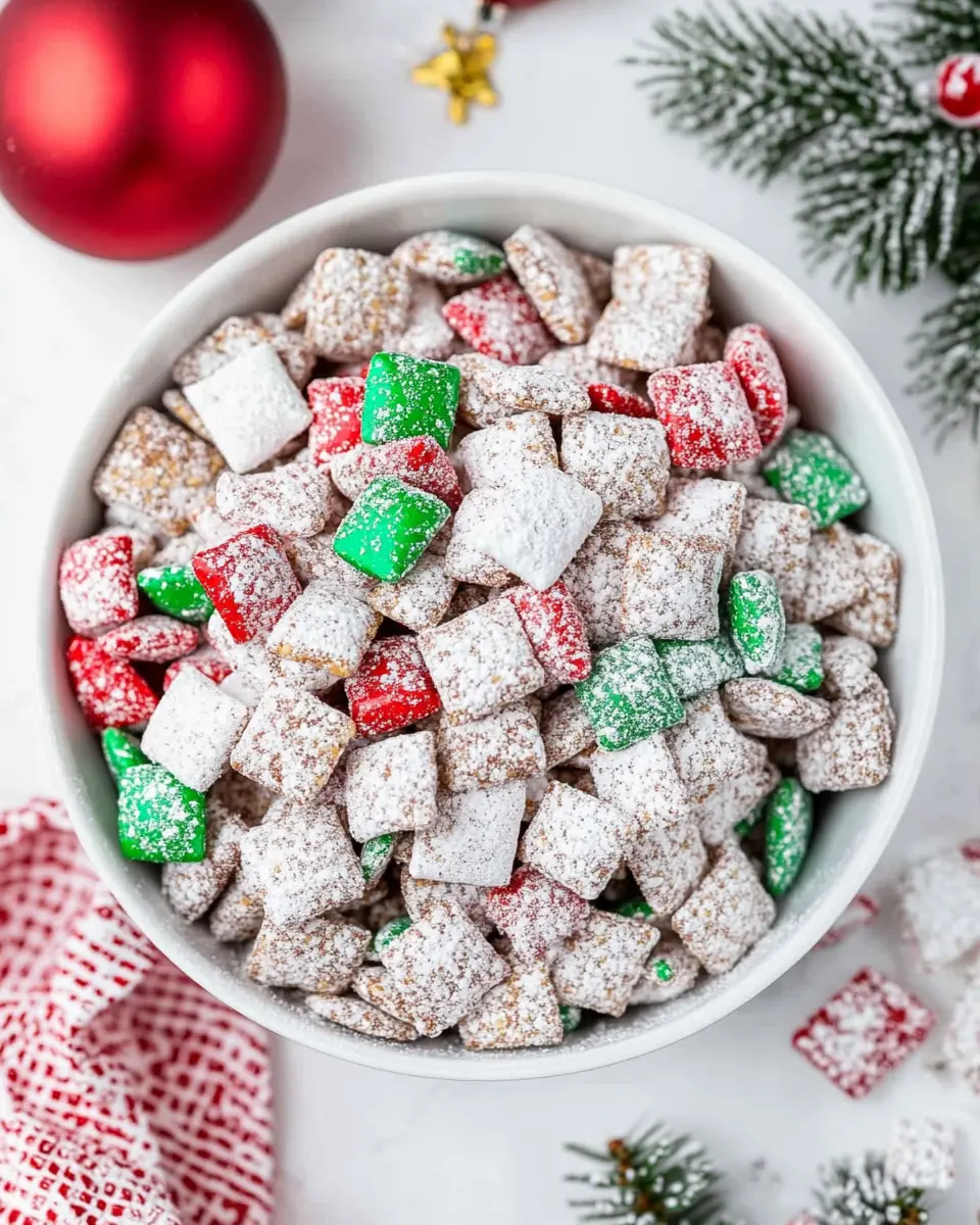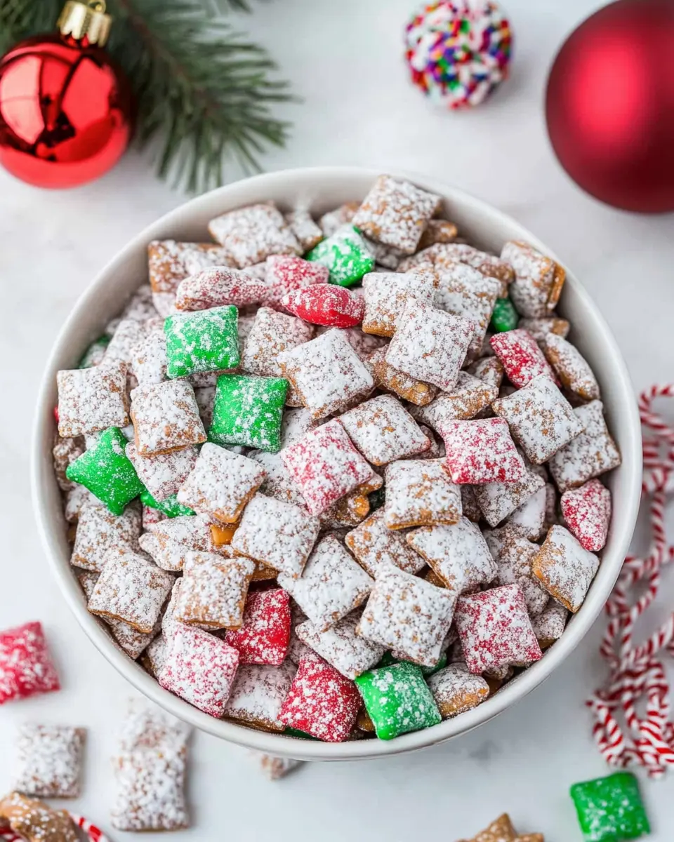 To top it all off, red and green sprinkles add a fun, festive touch. They make the Easy Christmas Puppy Chow look merry and bright, embodying the spirit of the season.