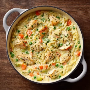 Oh, that comforting hug in a bowl! Remember those classic chicken pot pies? The flaky crust, the creamy, savory filling… pure nostalgia, right? Well, what if I told you that you can capture all those wonderful flavors and that cozy feeling, but in a fraction of the time and with way less fuss? Get ready to fall in love with this Creamy Chicken Pot Pie Orzo. It’s the ultimate weeknight savior that tastes like it simmered all day, but we both know the secret is how wonderfully quick and simple it is!