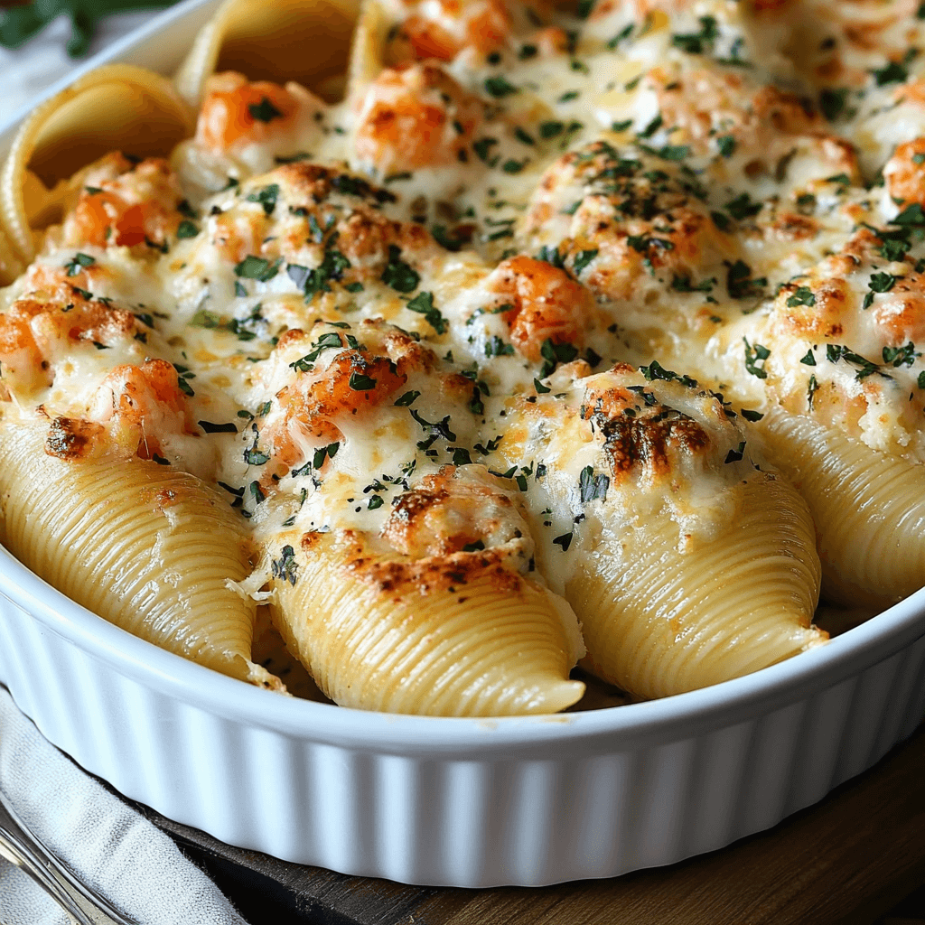 To ensure optimal results, remember to cook the pasta shells just until al dente; this way, they hold up beautifully when baked. A generous layer of marinara or béchamel sauce on top will seal the moisture in, resulting in a rich, creamy texture that keeps everyone coming back for seconds. Dive into this culinary adventure and elevate your dining experience with every delicious bite of seafood goodness!