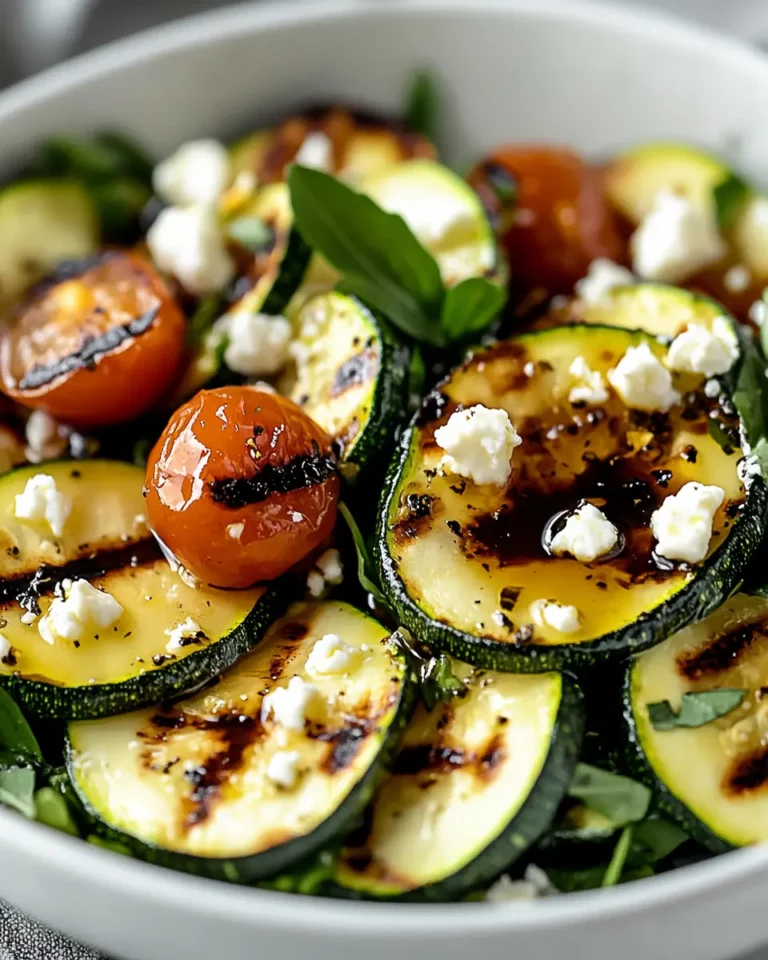 A delicious and healthy salad featuring grilled zucchini, fresh herbs, and a tangy dressing.