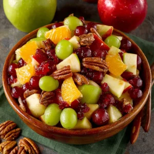 - Combine the Stars: In a big bowl, add your diced apples, dried cranberries, pecans, halved grapes, orange segments, and lemon juice. Give everything a gentle stir.