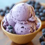 Proper storage is key to maintaining the quality of your homemade blueberry ice cream. Once churned and hardened, store it in an airtight container in the freezer for up to 2 months. To serve, let it soften slightly at room temperature for about 10-15 minutes, or use a small ice cream scoop to serve directly from the freezer. Reheating isn’t necessary, as it’s best enjoyed cold. If you find it too hard, let it sit at room temperature to soften as needed.