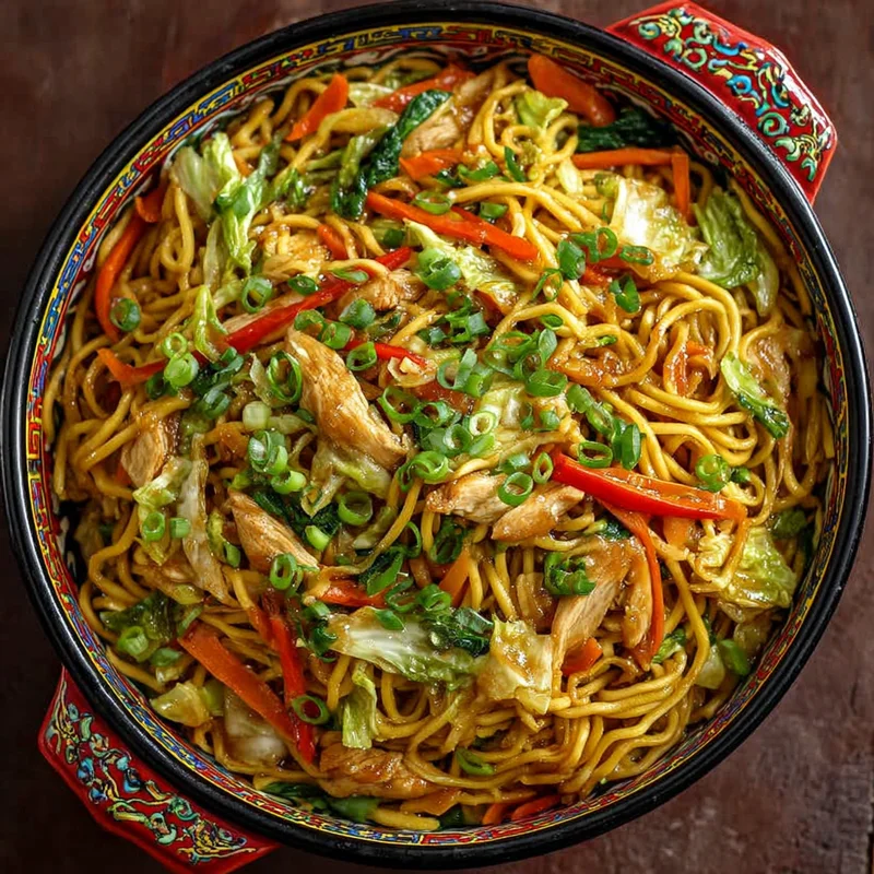 - Bring it All Together: Add your cooked chicken back into the skillet with the veggies. Now, add the uncooked chow mein noodles.
