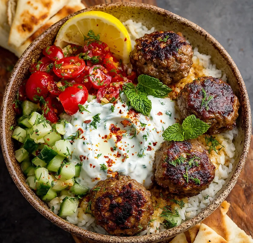- The grand finale! Grab your favorite bowls. Divide the zesty lemon rice among them. Then, artfully arrange those delicious baked meatballs on top. Add a generous dollop (or two!) of your homemade tzatziki – don't be shy! Finally, serve your beautiful Gyro Bowls with a side of that fresh cucumber and tomato salad. Close your eyes and imagine you're on a Greek island!