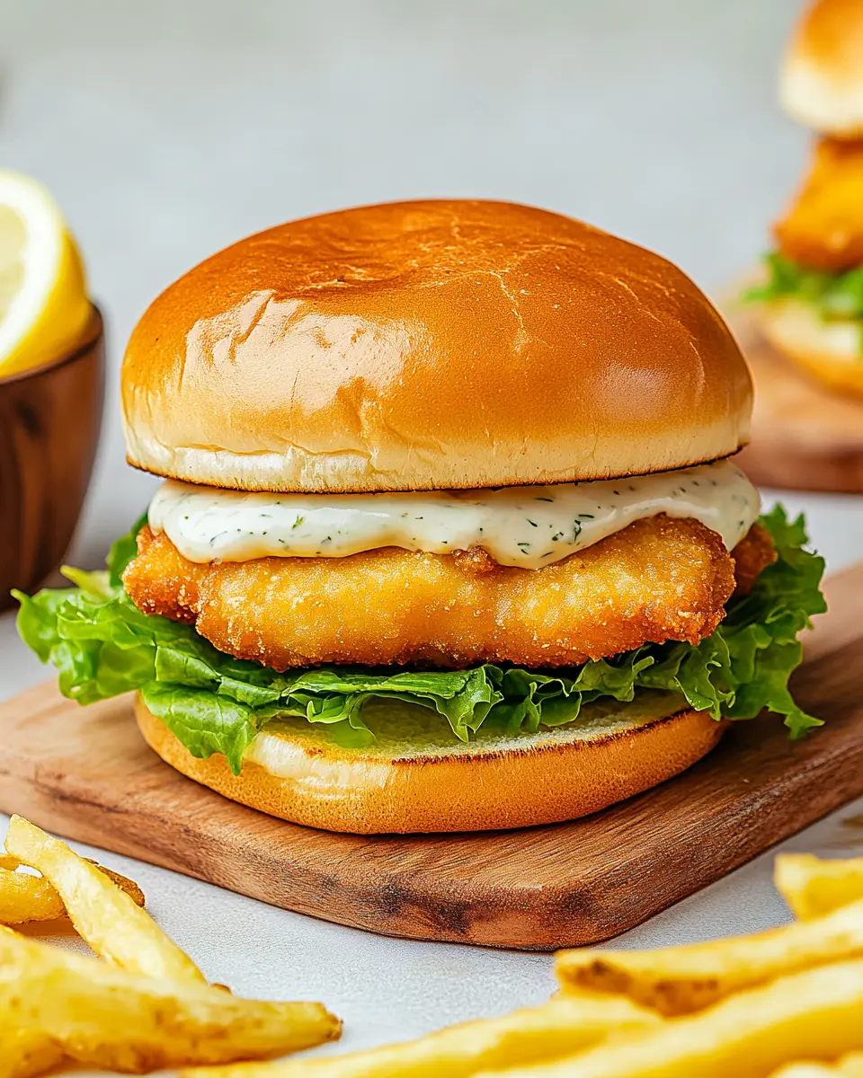 A delicious homemade version of the classic McDonald’s crispy fish sandwich, featuring flaky fish, creamy tartar sauce, and fresh toppings.