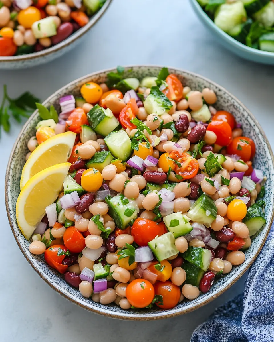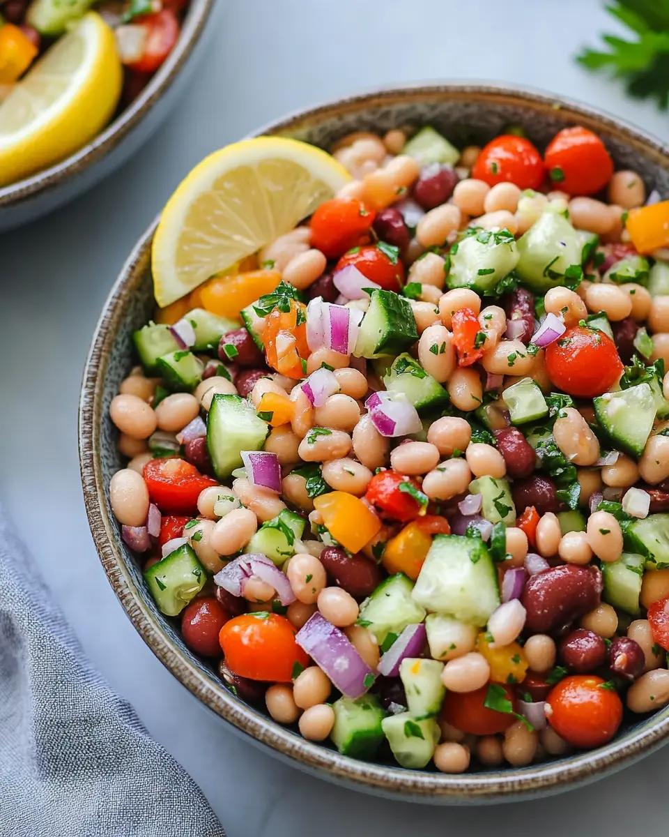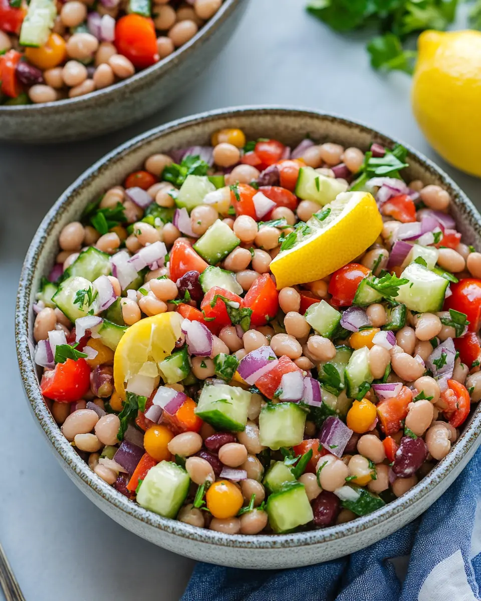 A healthy and delicious Mediterranean-inspired bean salad packed with protein and flavor.