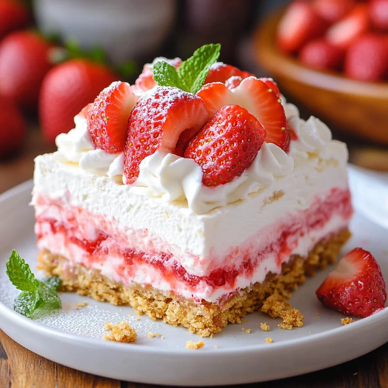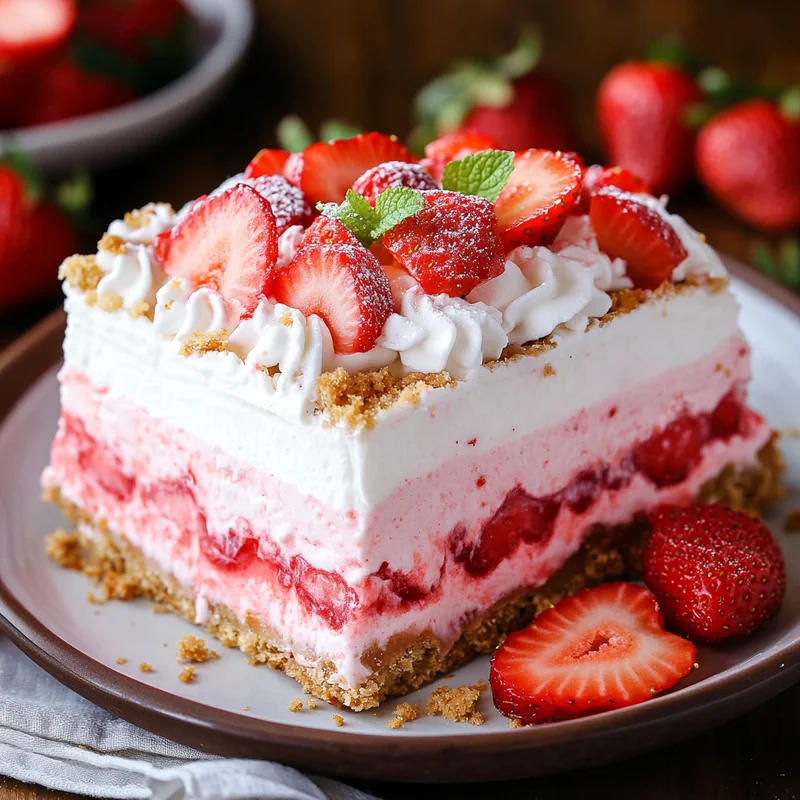 Step 5: Garnish and Serve. Once the lasagna is fully set, slice it into squares (use a knife dipped in hot water for cleaner cuts!). Top each serving with a dollop of extra whipped topping or fresh whipped cream, a few fresh strawberry slices, and a sprig of mint for that extra special touch. Enjoy the oohs and aahs!