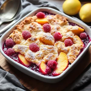 Hey there, friend! Let me tell you about a dessert that just screams ‘cozy summer evening’ to me. You know those warm, bubbly fruit desserts that fill your kitchen with the most amazing smell? This Easy Peach and Raspberry Cobbler is exactly that feeling, bottled up in a baking dish. It’s not just delicious; it’s ridiculously simple to pull together, even when you’re short on time. Those juicy peaches and bright raspberries under that sweet, golden topping? Pure heaven. Get ready to make some seriously happy memories (and maybe eat the whole pan!).