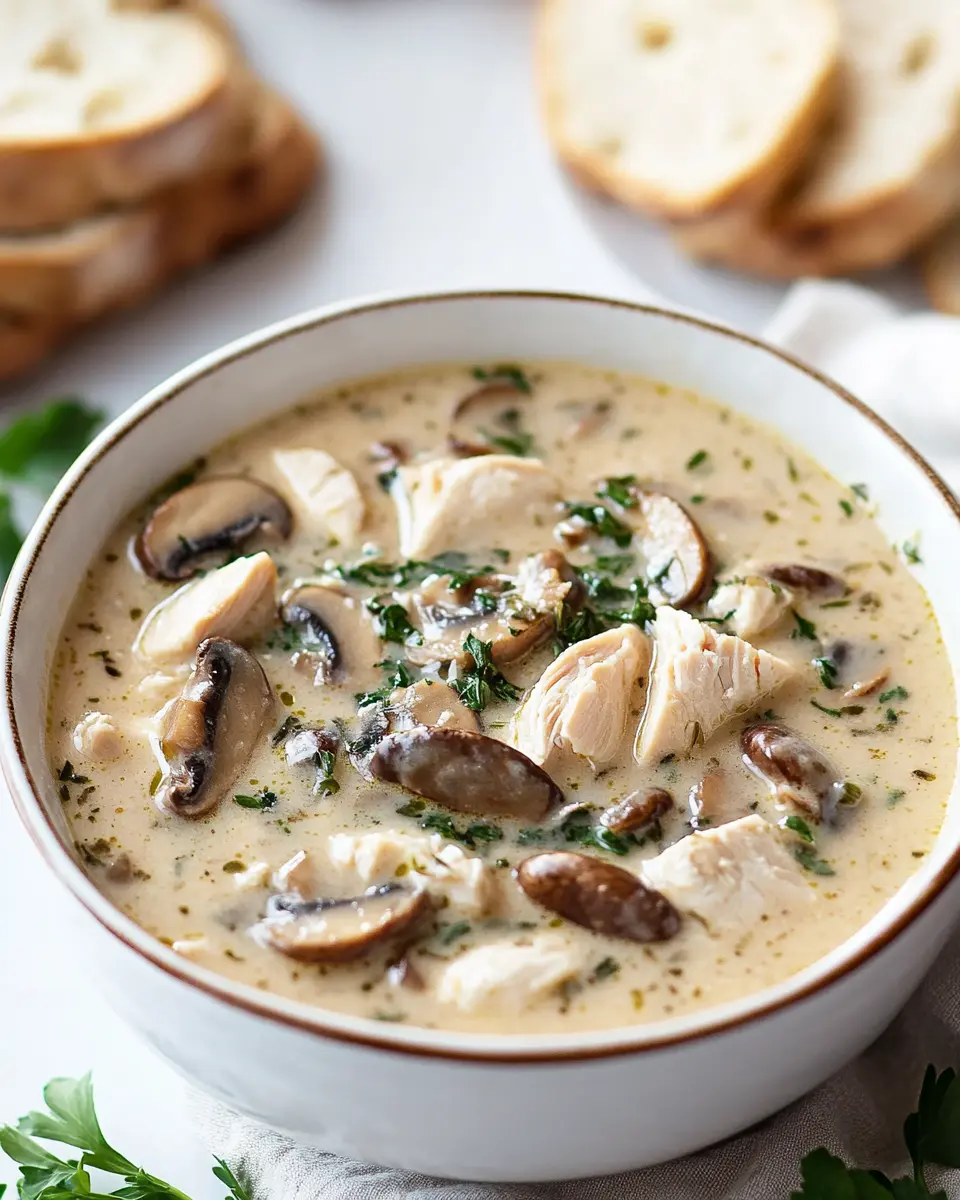 This Easy Rotisserie Chicken and Mushroom Soup provides a well-balanced meal with essential nutrients. Each serving contains approximately 250 calories, making it a hearty yet light option for lunch or dinner. With 25 grams of protein, it supports muscle health and keeps you feeling full longer.