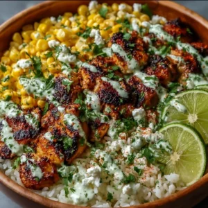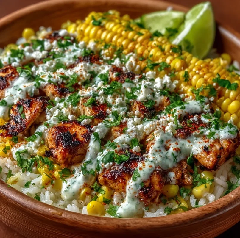 You can prep most of the components ahead of time, like cooking the rice, chopping the veggies, and seasoning the chicken. The street corn mixture is best assembled closer to serving time to keep the cilantro fresh and the flavors bright.