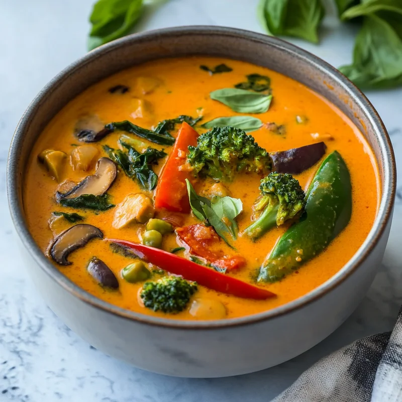 - Garnish and Serve: Once your veggies are perfectly tender, ladle your delicious Thai Red Curry into bowls. Scatter those fresh Thai basil leaves on top for a burst of freshness and that signature aroma. Enjoy!