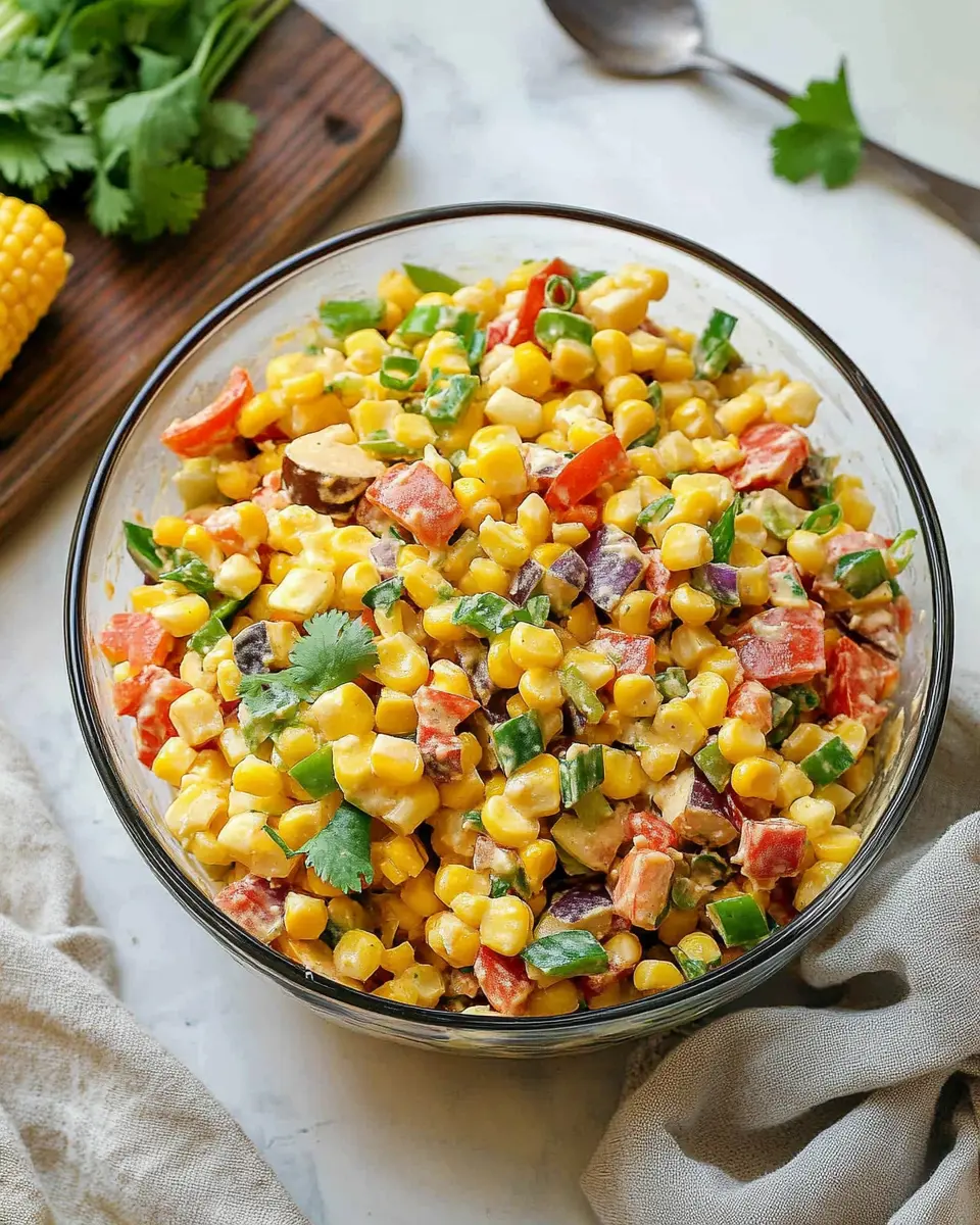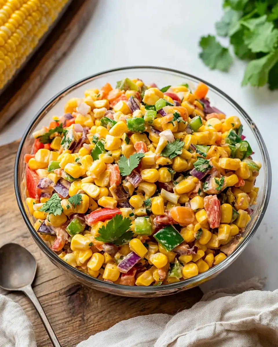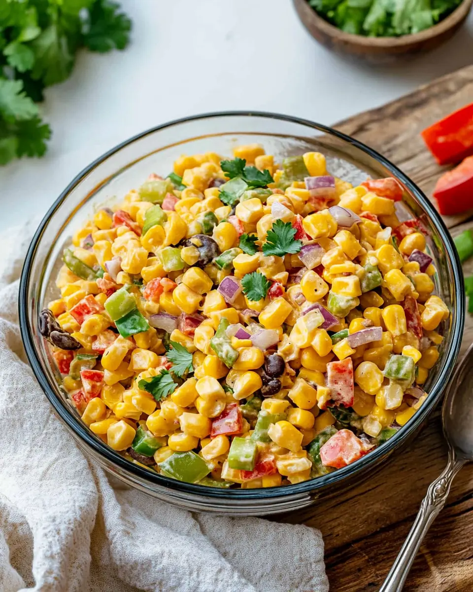 Diced Bell Pepper (1 cup): Providing vibrant color and a fresh crunch, diced bell peppers elevate the visual appeal of the salad while contributing a mild, sweet flavor that complements the corn.