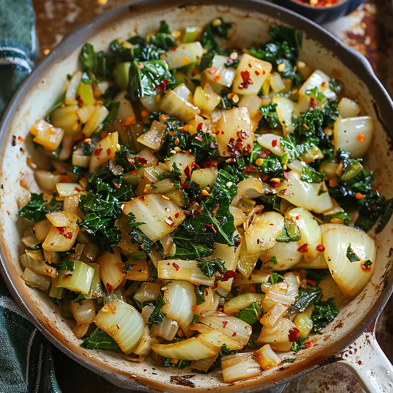 Cozy Garlic Sautéed Cabbage and Kale Skillet