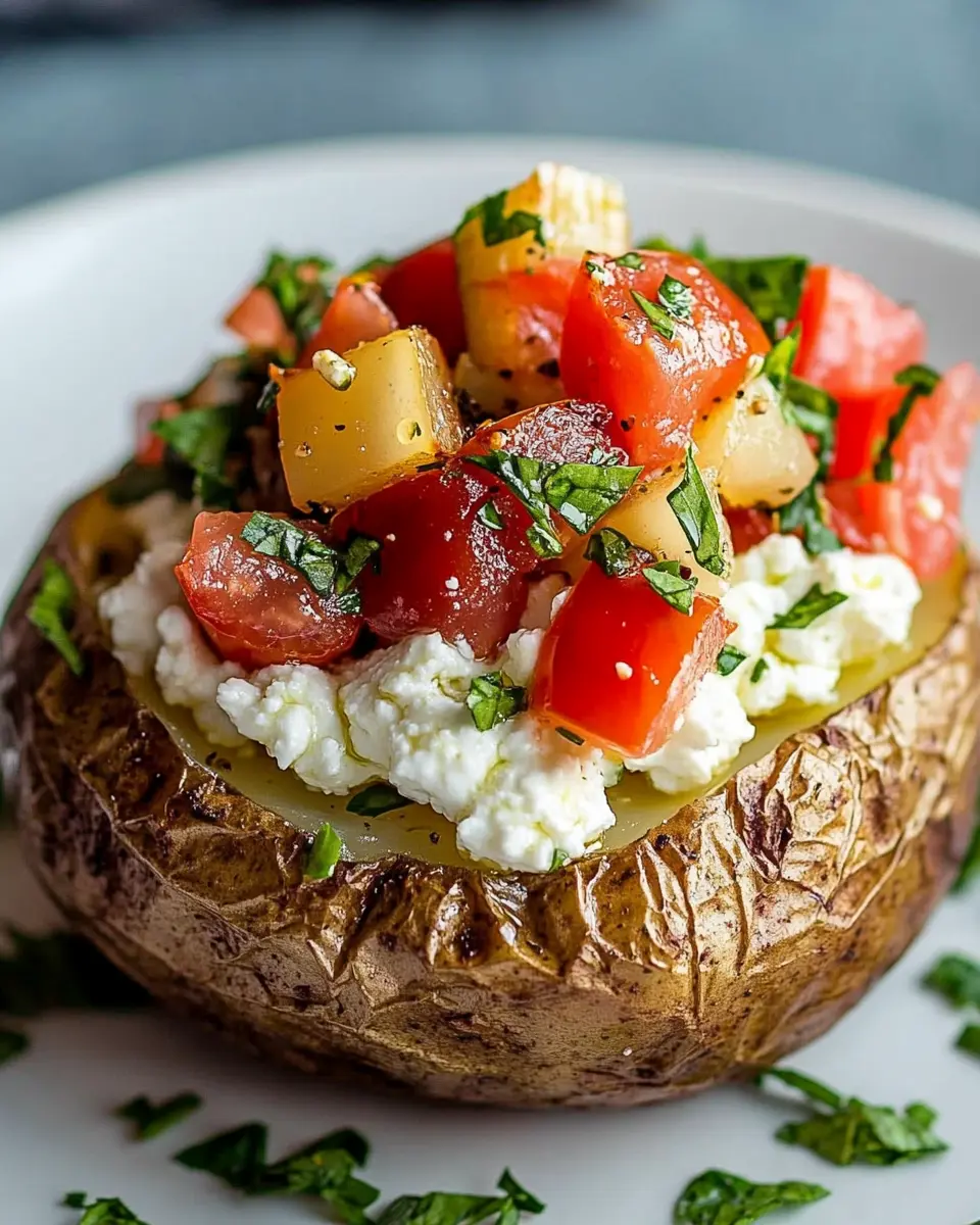 This recipe is a delightful twist on a classic jacket potato, featuring creamy cottage cheese and refreshing Greek flavors. Not only is it easy to prepare, but it also provides a fulfilling meal that can be enjoyed any time of day. Whether you’re looking for a light lunch or a hearty dinner, this Greek-Style Jacket Potato with Cottage Cheese is a delicious and nutritious option that won’t disappoint.
