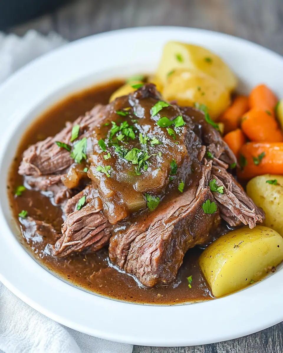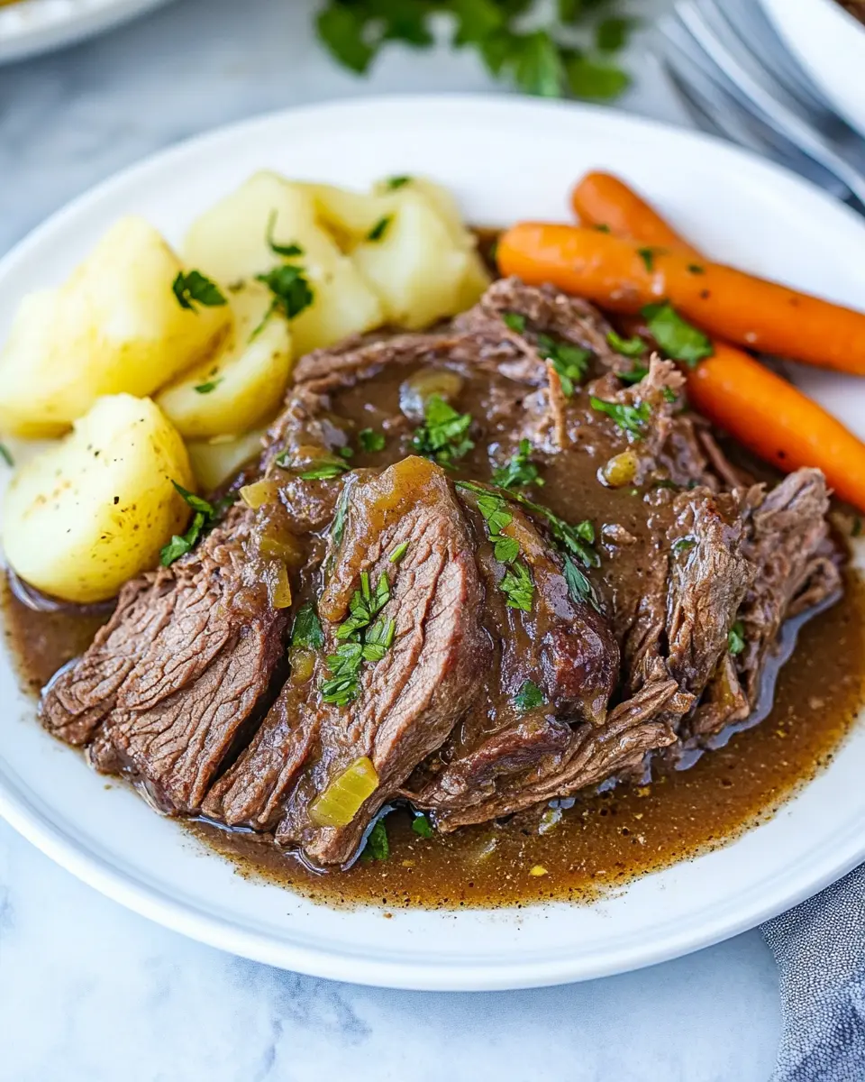 Whether it’s a cozy family dinner or a gathering with friends, this pot roast is sure to impress. Its generous yield of 6 servings makes it perfect for sharing, allowing everyone to enjoy the robust flavors and tender texture. Plus, the ease of preparation means you can focus on spending quality time with your loved ones while it cooks.
