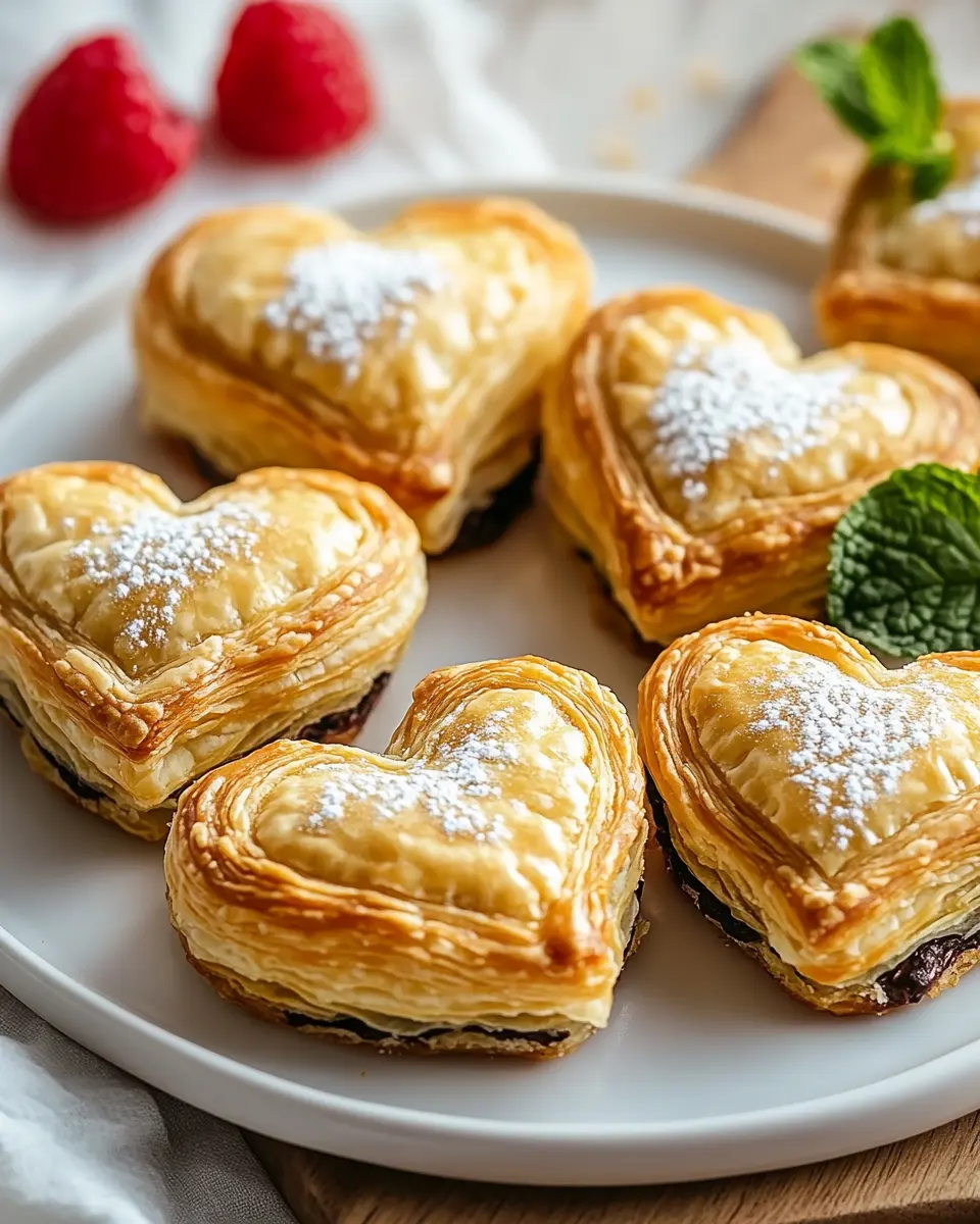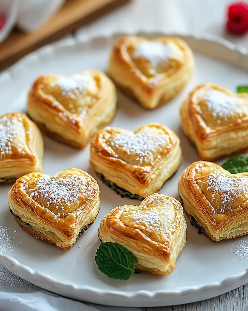 Delicious heart-shaped puff pastry bites filled with a sweet or savory filling, perfect for any occasion.