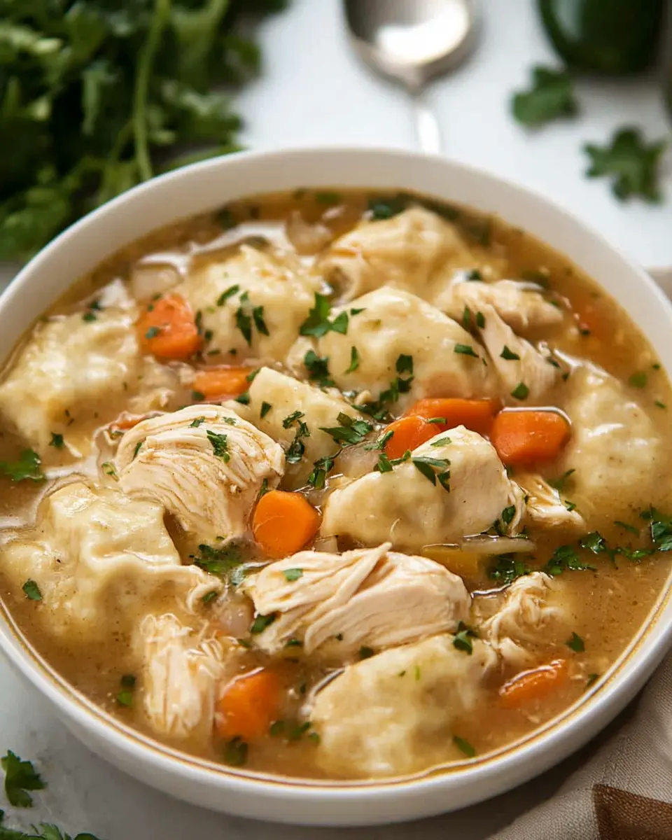 There’s something inherently comforting about chicken and dumplings, and this recipe delivers on that promise. The rich, savory flavors combined with tender chicken and fluffy dumplings create a satisfying dish that appeals to all ages. It’s a meal that not only fills your stomach but also warms your heart, making it a go-to for family dinners.