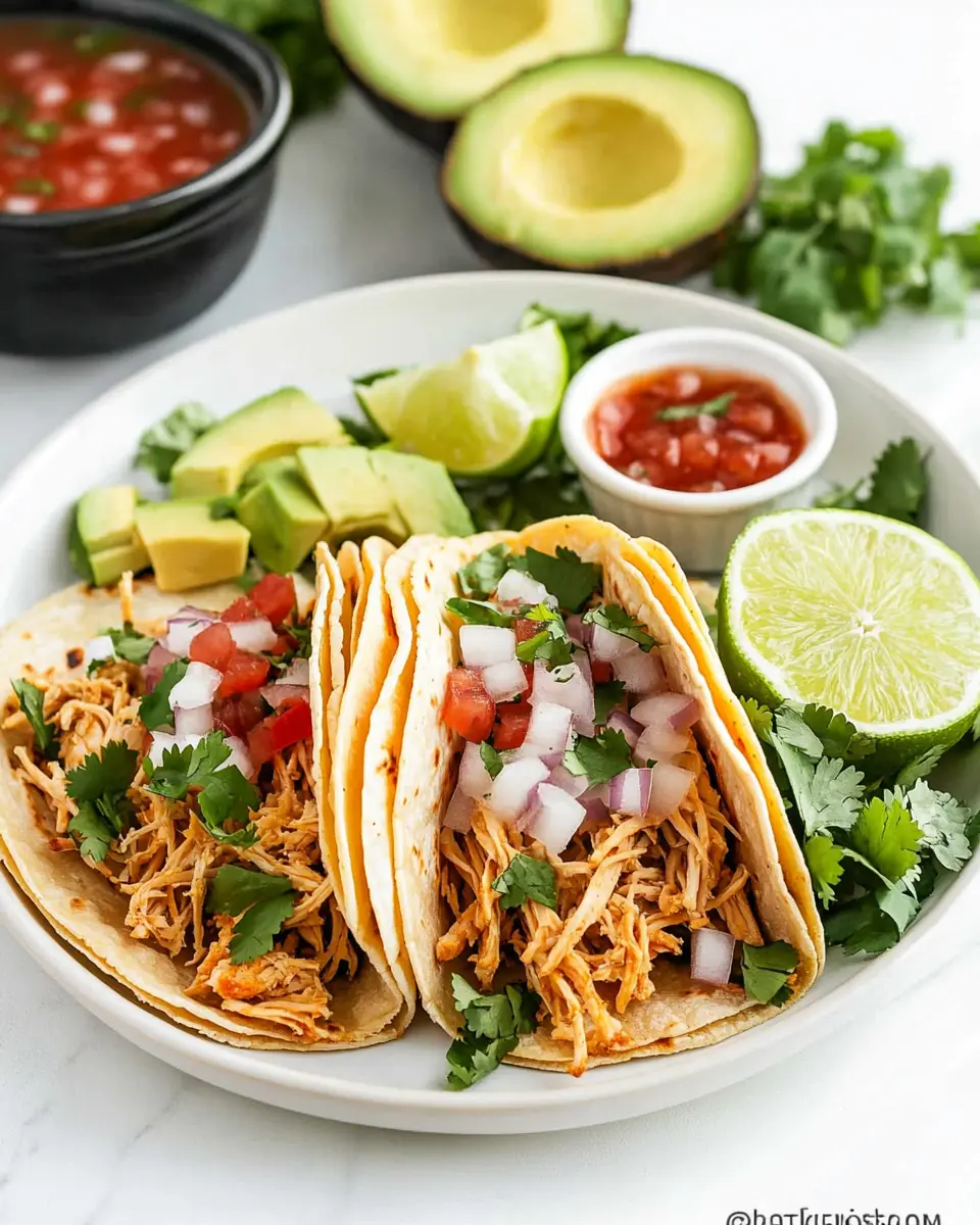 If you have any leftovers, store them in an airtight container in the refrigerator for up to three days. To reheat, simply warm them up in the microwave or on the stovetop, adding a splash of chicken broth to keep the chicken moist. Enjoy your delicious tacos again without the hassle of starting from scratch!