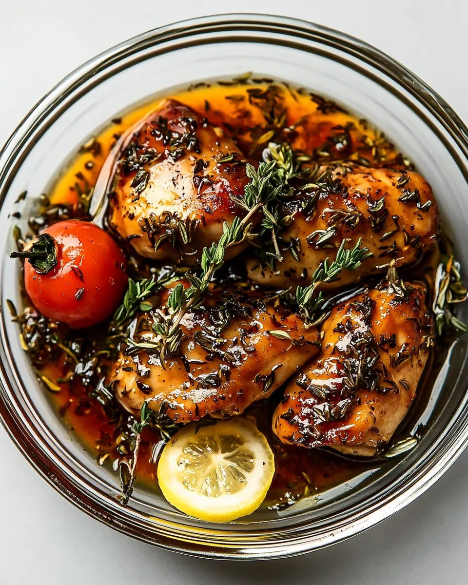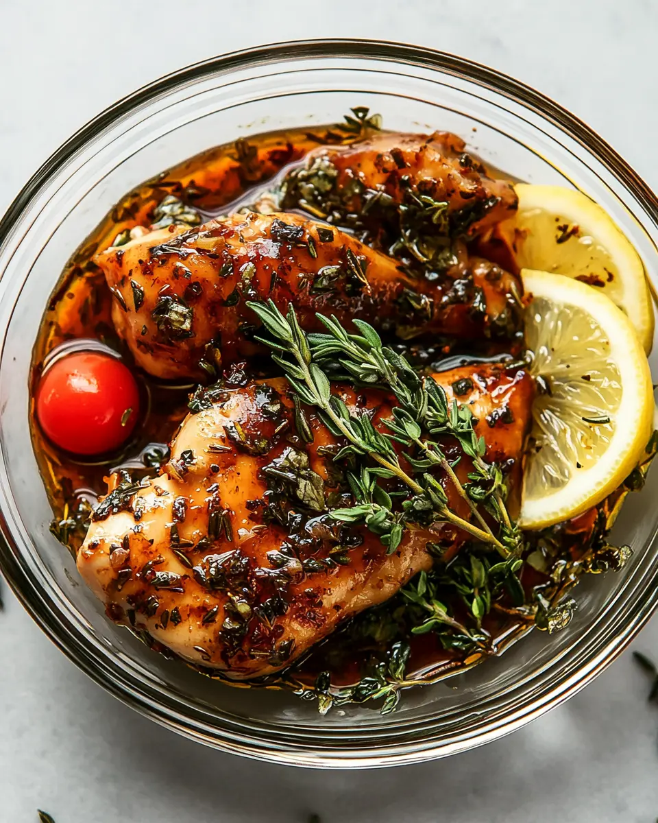 Balsamic vinegar (1/4 cup) brings a delightful acidity and sweetness that balances the savory elements of the marinade. This tangy component elevates the chicken with a complex flavor profile that resonates beautifully with Italian cuisine.