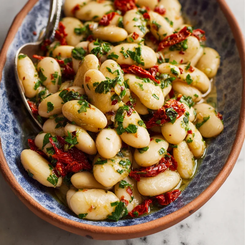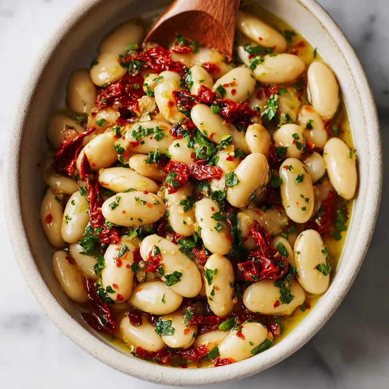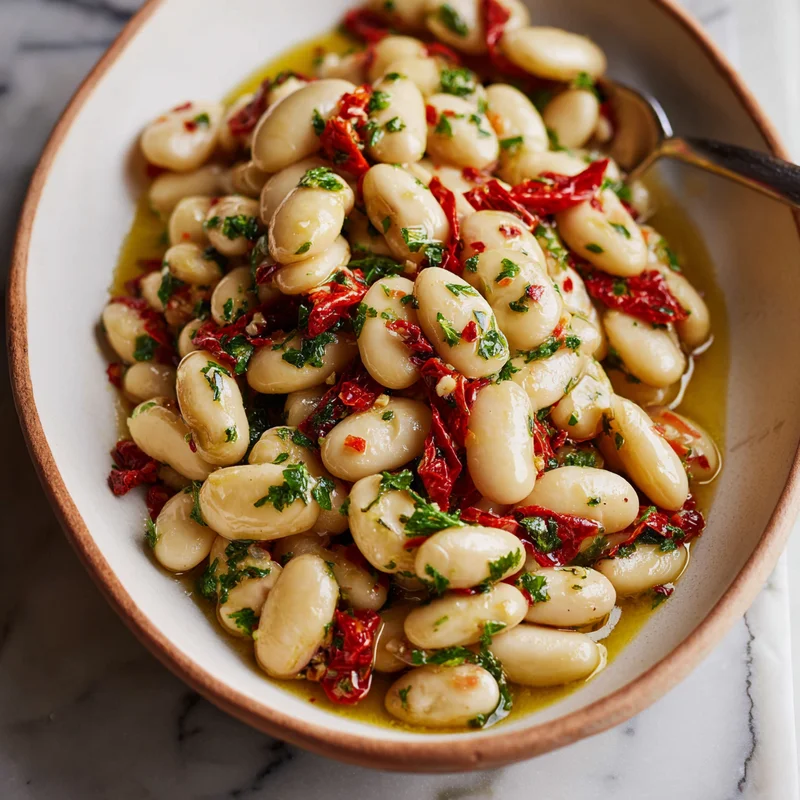 - Combine Everything: Grab a medium-sized bowl. Add your drained and rinsed gigante beans, the extra-virgin olive oil, that lovely fresh lemon juice, the chopped parsley, those sweet sun-dried tomatoes, the minced garlic, the lemon zest, sea salt, and a pinch of red pepper flakes.