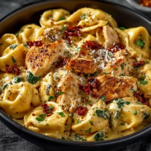 While it’s best enjoyed fresh, you can cook the chicken and make the sauce ahead of time. Store them separately. When you’re ready to serve, reheat the sauce, cook the tortellini, and then combine everything as directed.