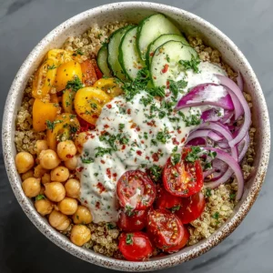 - Storing components separately: If you want to prep components ahead, store the cooked quinoa, chopped veggies, and chickpeas in separate airtight containers in the refrigerator. Keep the cottage cheese and tahini sauce separate as well. Assemble right before serving.