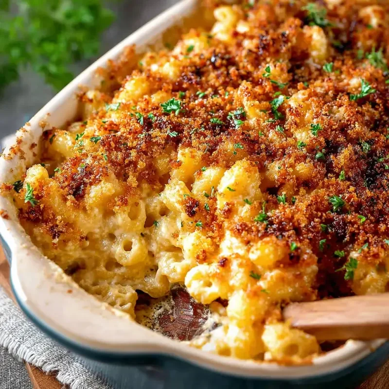 - Optional crispy topping: If you’re going for that Panko crunch, in a small bowl, combine the panko breadcrumbs, melted butter, and olive oil. Toss them around until the breadcrumbs are evenly coated. Sprinkle this mixture over the macaroni and cheese.