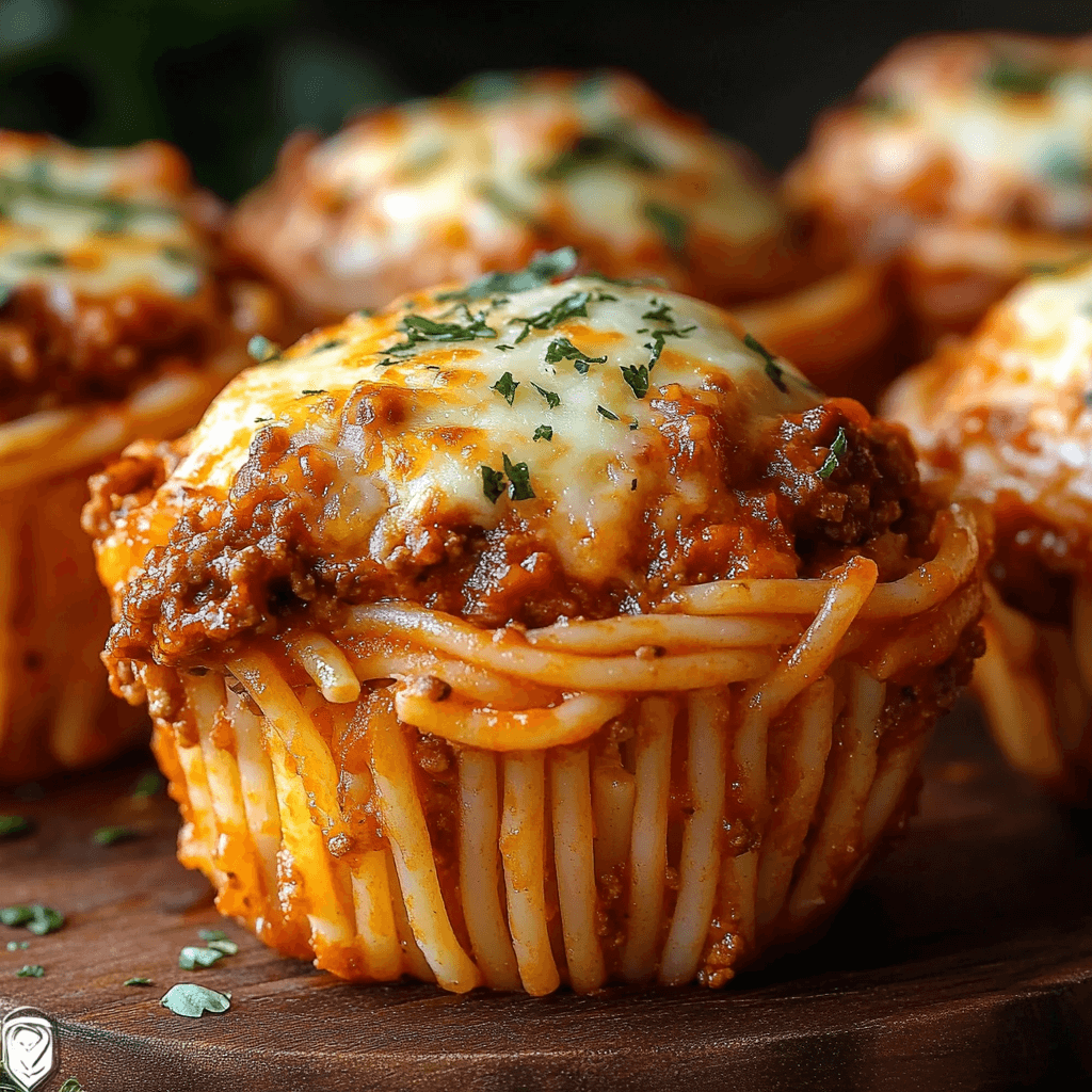 Individual servings of classic Bolognese spaghetti, baked to perfection in muffin tins for easy portioning and a fun twist on a family favorite!