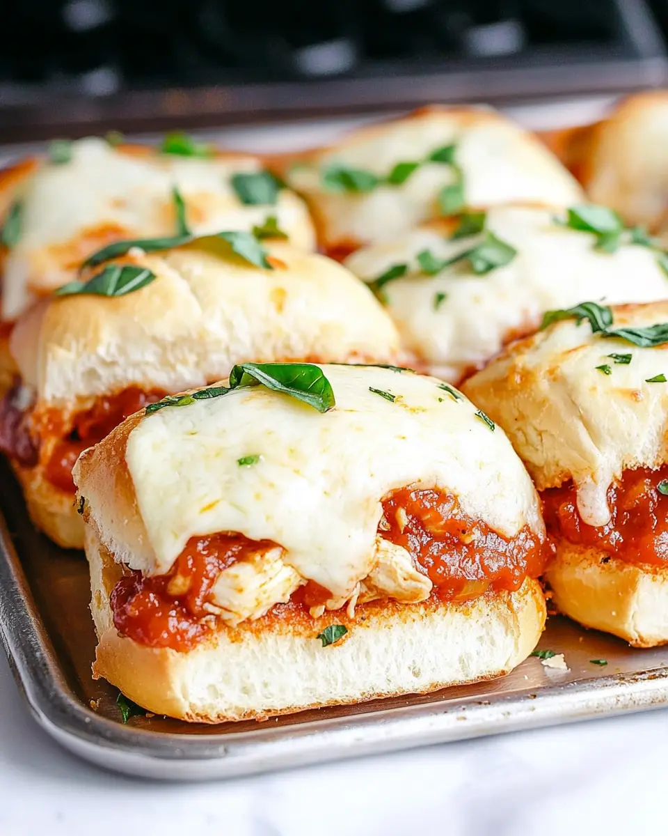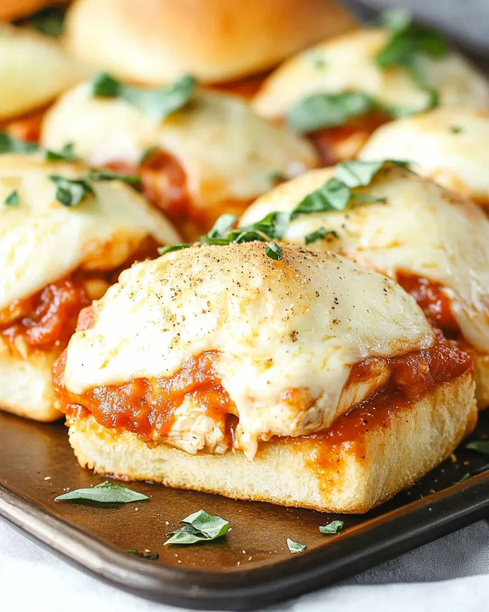 If you have any leftovers, store the sliders in an airtight container in the refrigerator for up to three days. To reheat, place them in a preheated oven at 350°F (175°C) for about 10 minutes to restore the crispy texture. Avoid microwaving them, as that can make the rolls soggy. With these tips, you’ll enjoy your Mini Chicken Parm Sliders even after the first serving!