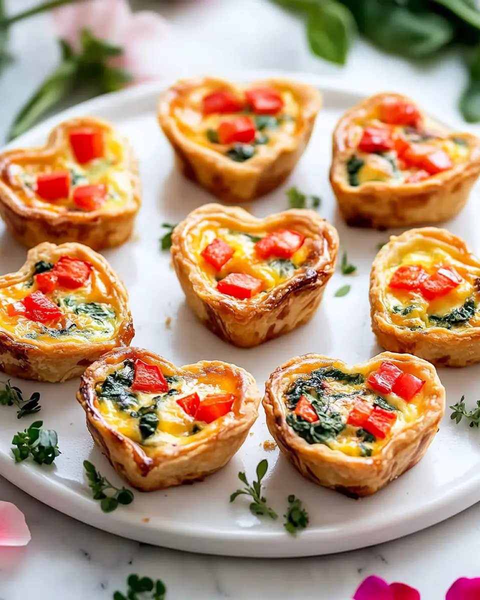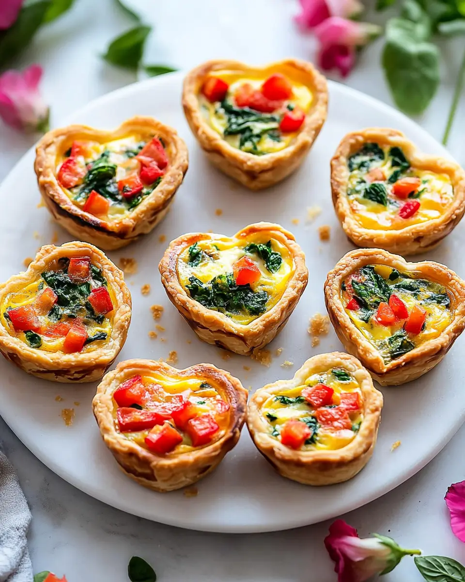 Mini Quiche Hearts are best served warm, allowing the flavors to shine through. Arrange them on a decorative platter for a beautiful display, and consider garnishing with fresh herbs like parsley or chives for an added touch. These delightful bites are perfect for guests to pick up and enjoy with minimal fuss.