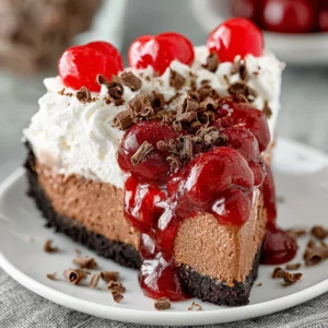 The moment of truth! Once your cheesecake is nice and firm, carefully release the sides of the springform pan. Take a deep breath and admire your creation. Now, let’s make it pretty! Dollop on that cup of whipped cream or whipped topping. Spoon the remaining cup of cherry pie filling over the whipped cream, letting it cascade down the sides a bit. If you’re feeling fancy, sprinkle on some chocolate shavings. And there you have it – your very own stunning Black Forest Cheesecake, ready to be devoured!