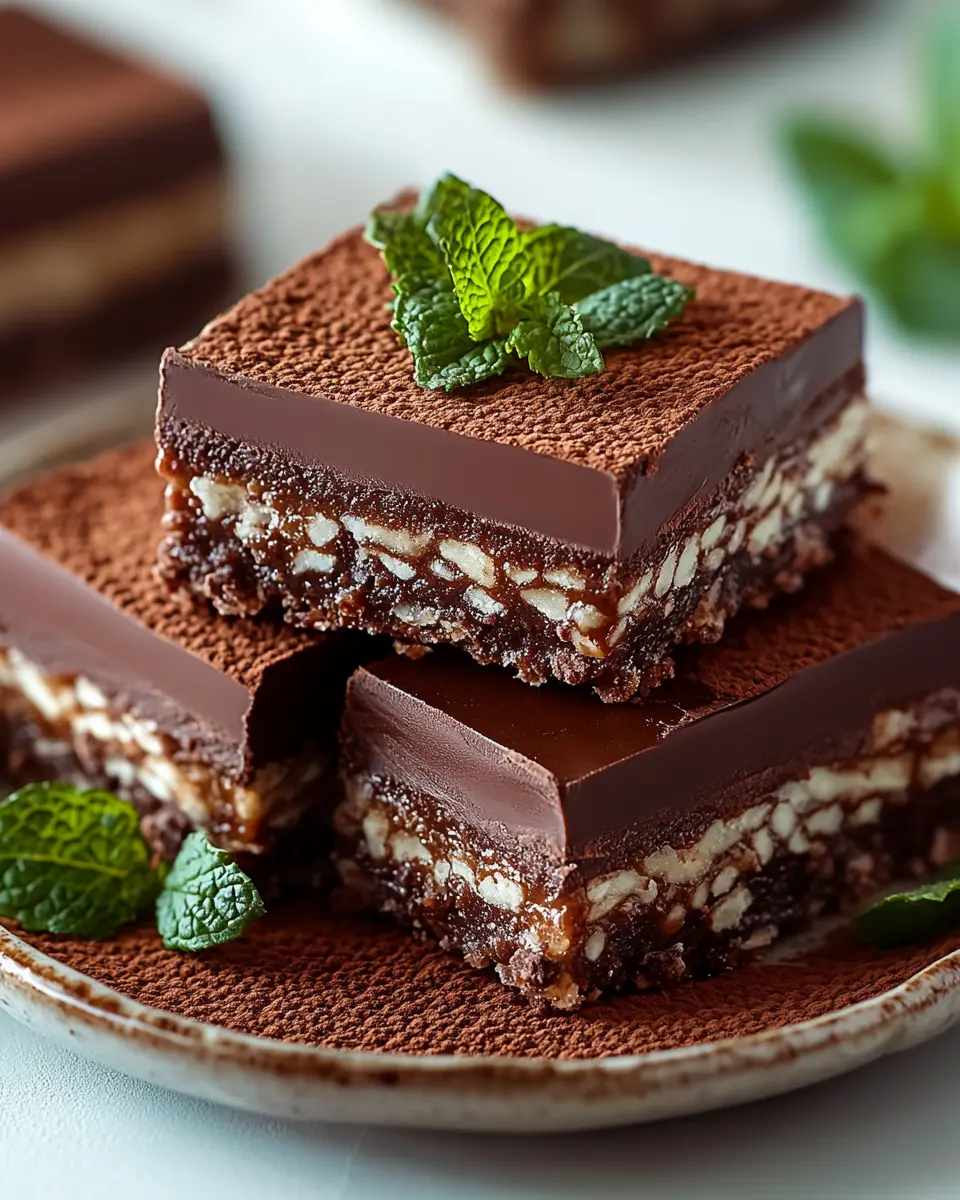 For an extra touch of elegance, consider garnishing your No-Bake Chocolate Mint Crisp Bars before serving. A light dusting of powdered sugar or a drizzle of melted chocolate can enhance their visual appeal. You might also add a sprig of fresh mint on top for a vibrant, aromatic garnish that highlights the mint flavor in the bars.
