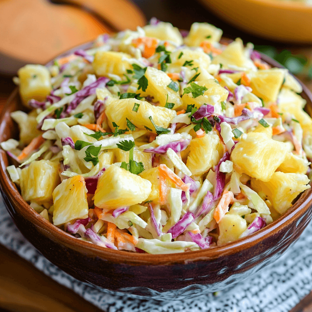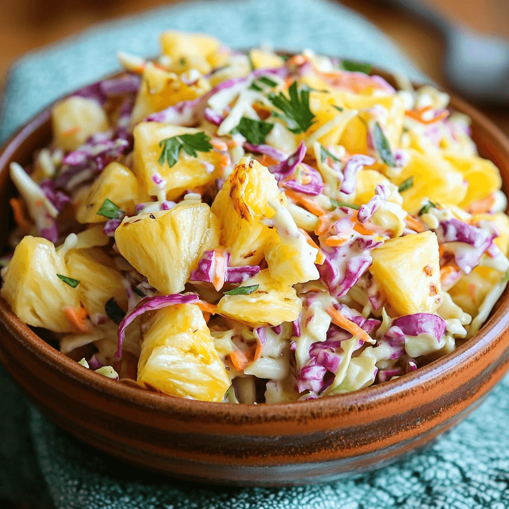 Use the freshest ingredients possible. Freshly squeezed lime juice and ripe pineapple will make a significant difference in the taste. Don’t be shy with the cilantro; it adds a lovely fresh element. If your cabbage is particularly tough, you can massage it gently with a pinch of salt before adding the dressing to help soften it. For a vibrant presentation, arrange the coleslaw in layers, starting with red cabbage at the bottom, then green cabbage, and finally the pineapple, before drizzling with dressing.
