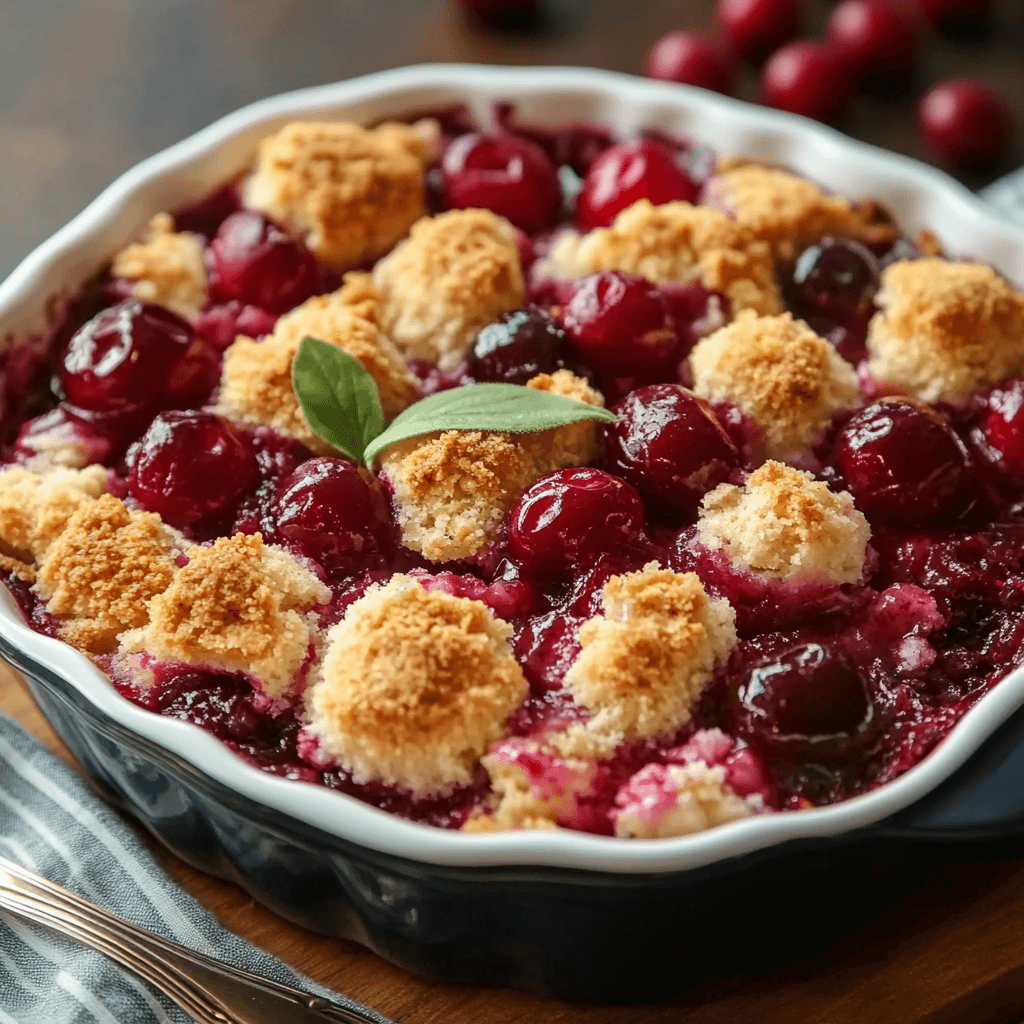 A classic dessert with sweet cherries and a buttery, crumbly topping.