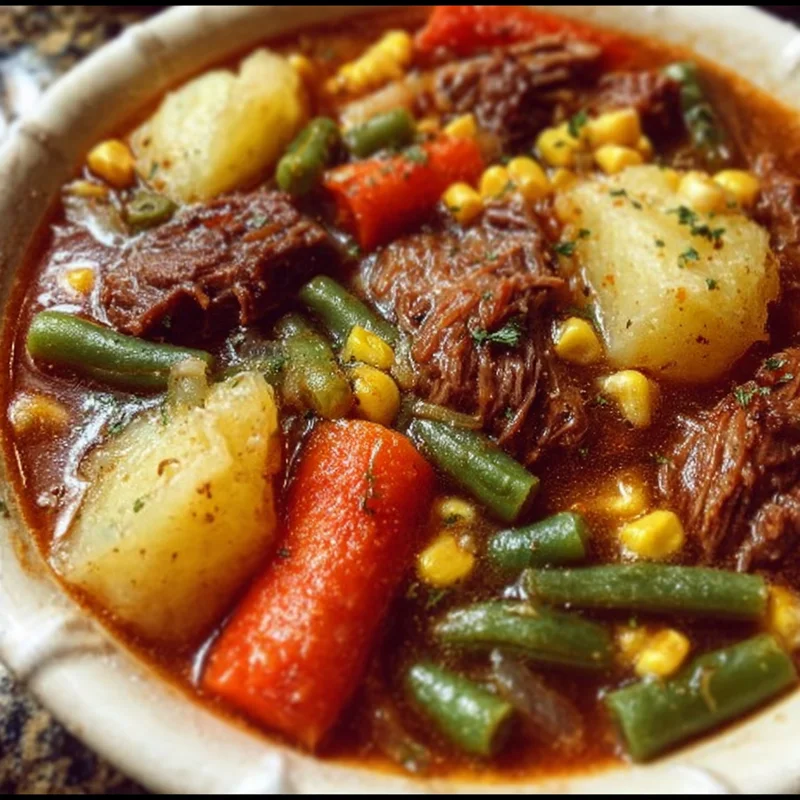 - Can I make this in a slow cooker? Absolutely! Brown your beef pieces first, then add all ingredients to your slow cooker. Cook on low for 6-8 hours or on high for 3-4 hours, until the beef is tender. Add the frozen vegetables (corn, green beans, peas) during the last hour of cooking.