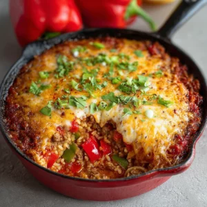 - Prep Ahead: You can brown the beef and cook the pepper mixture (up to step 6) the day before. Store it in the refrigerator, then transfer to your baking dish, top with cheese, and bake when you’re ready to serve. It makes weeknight dinners even easier!