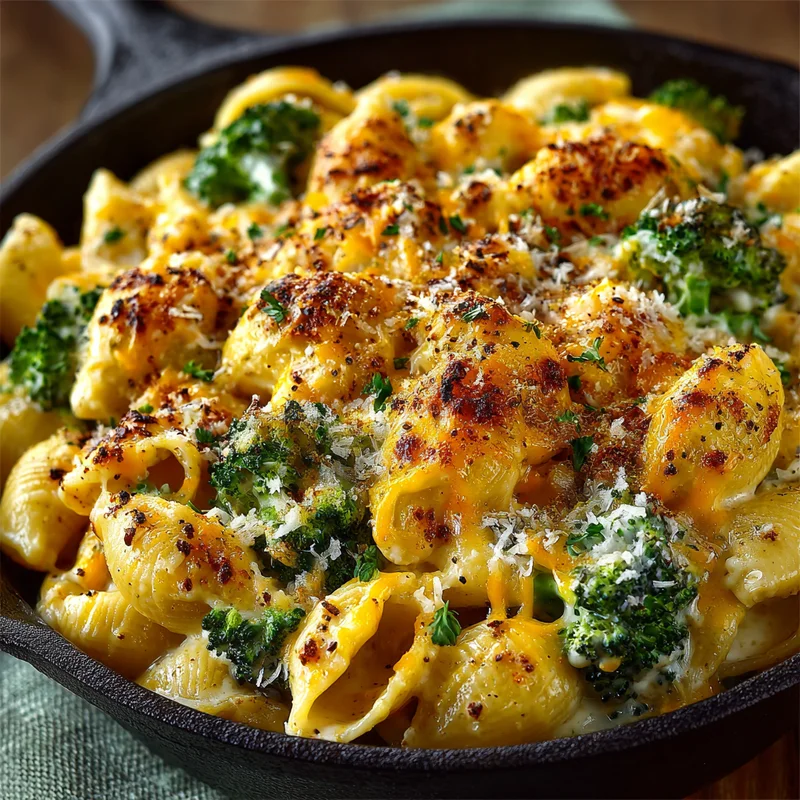 - Now for the fun part! Toss in your pasta shells, the finely chopped broccoli, chicken bouillon, garlic powder, onion powder, and mustard powder. Give it all a good stir to make sure everything is happily submerged in that glorious sauce.4 tablespoons butter