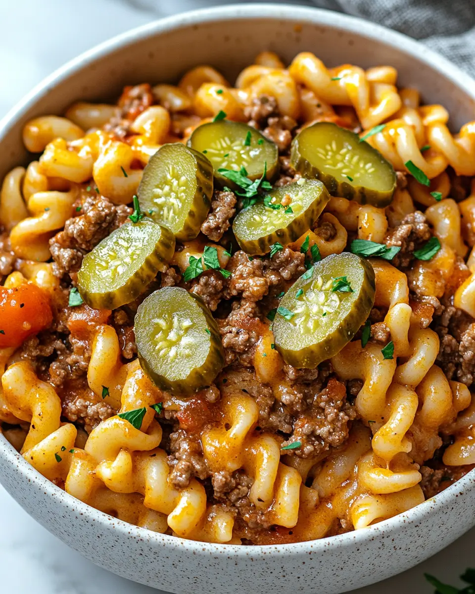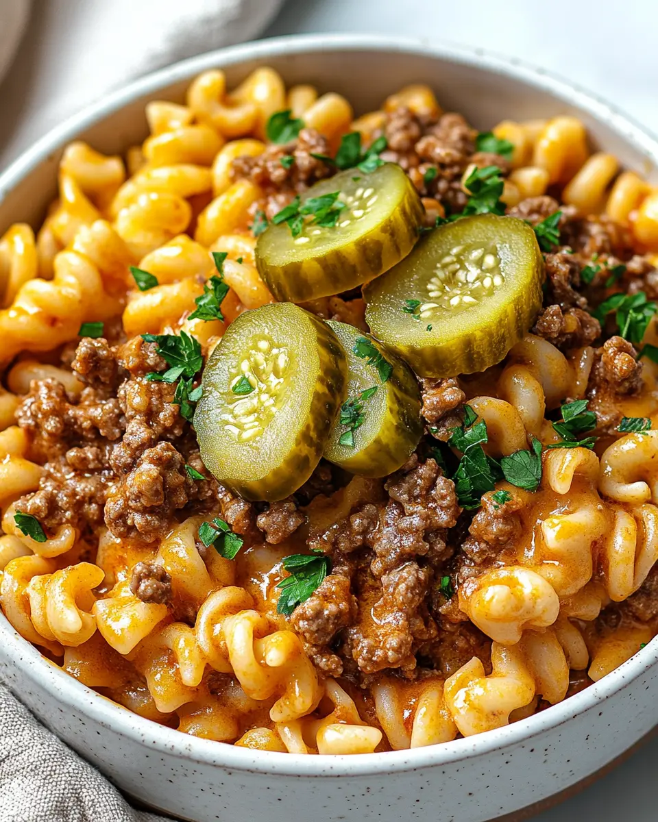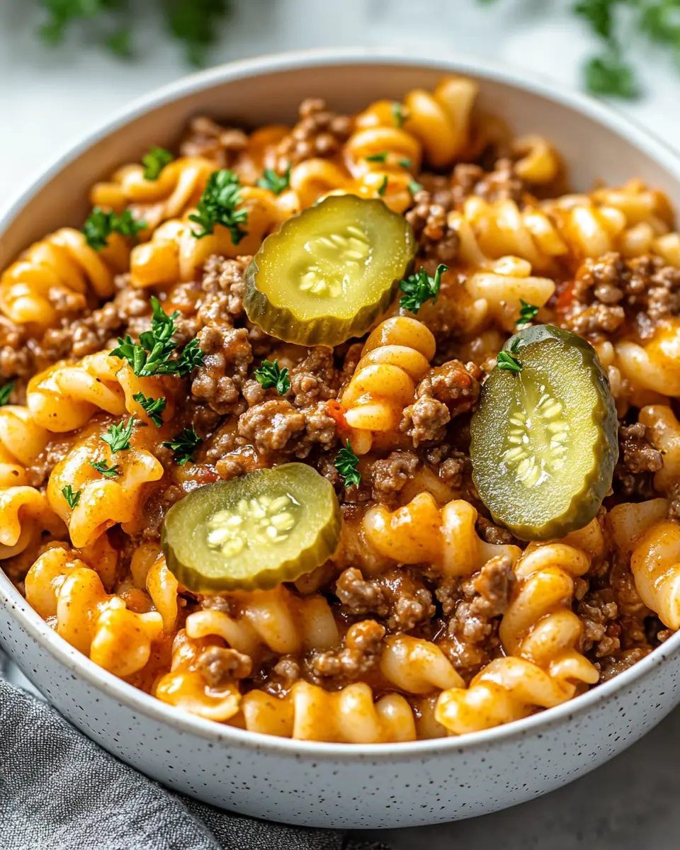 This dish is more than just a meal; it’s a nostalgic journey back to childhood. The familiar flavors of a cheeseburger combine beautifully with pasta, creating a comforting experience that evokes cherished memories. Each creamy, cheesy bite brings the essence of a classic cheeseburger to the table, making it a favorite for both young professionals and families alike.