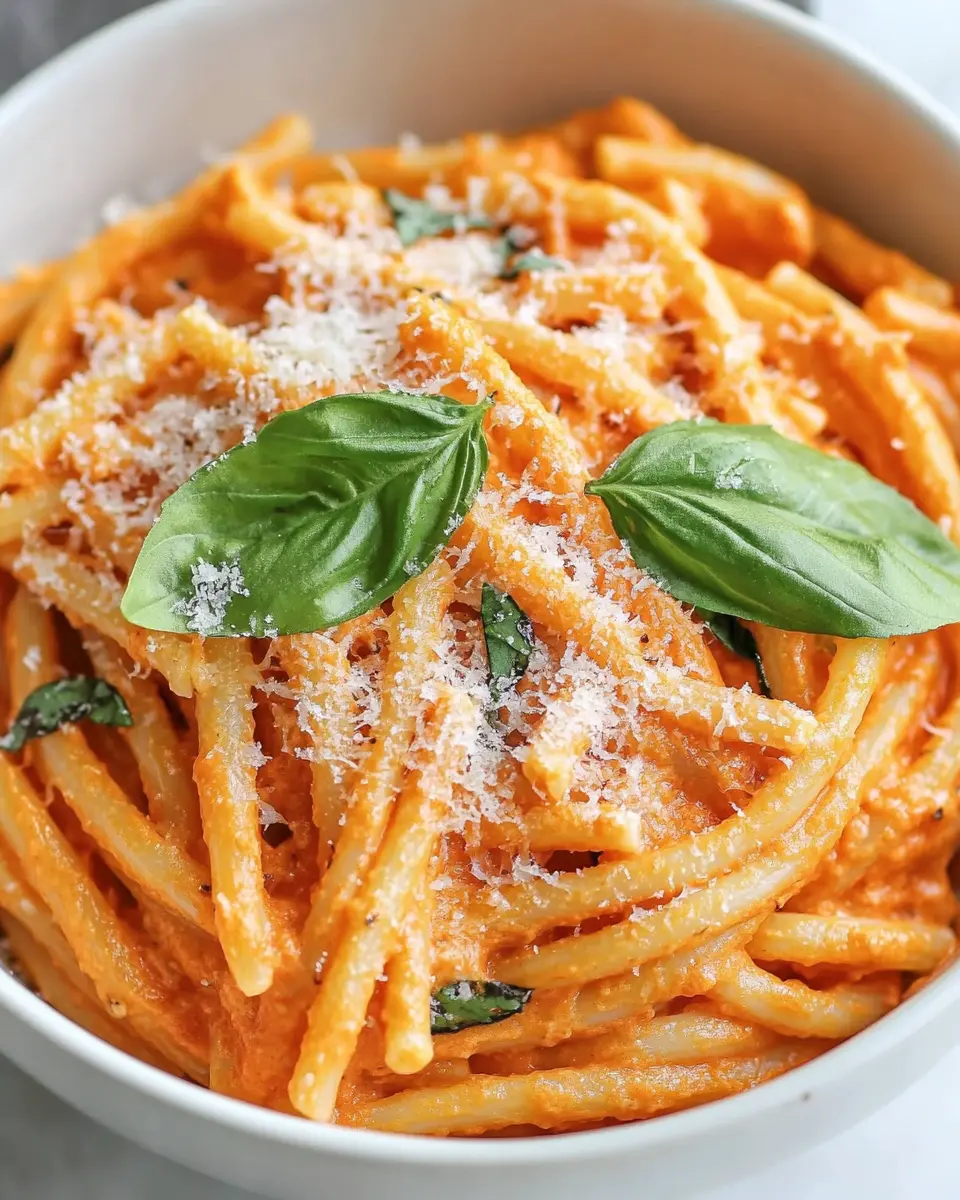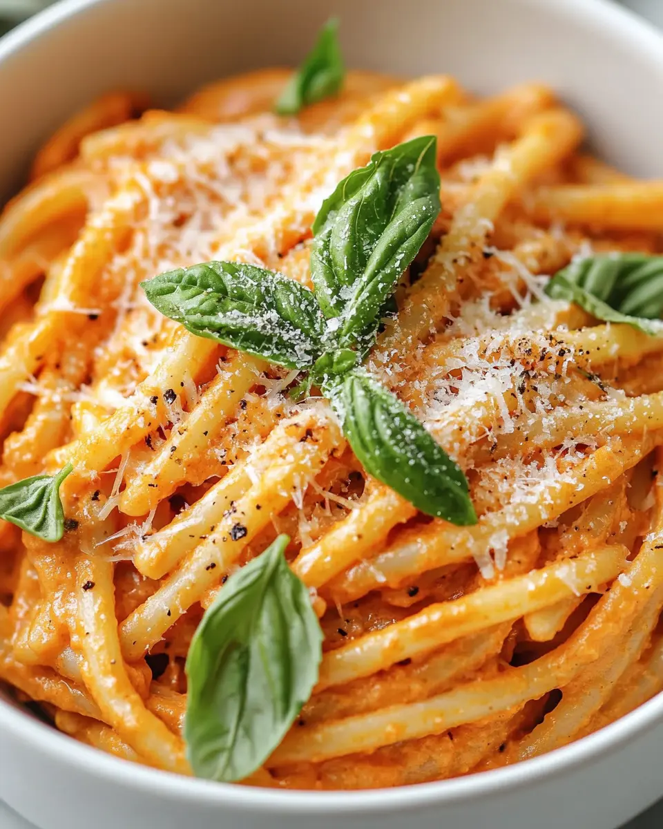 Fresh basil is the finishing touch, adding a vibrant color and a burst of freshness to the dish. It not only enhances the presentation but also contributes a fragrant note that complements the creamy tomato sauce beautifully.
