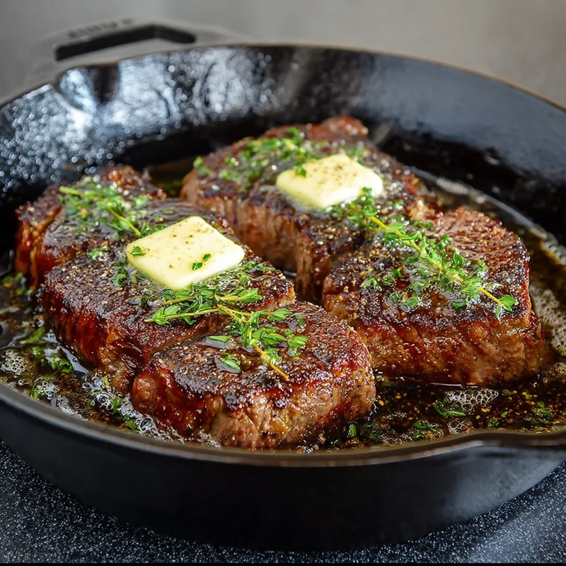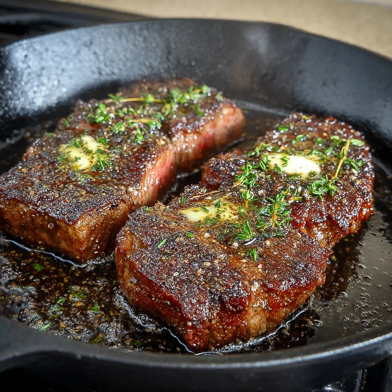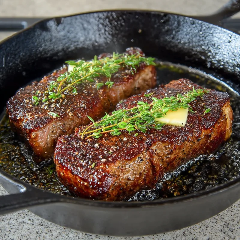 - Butter Baste Bliss: During the final minute of cooking, toss in the tablespoon of butter and the sprigs of fresh thyme. Tilt the pan slightly and use a spoon to baste the melted butter and thyme over the steaks. This is pure flavor infusion!